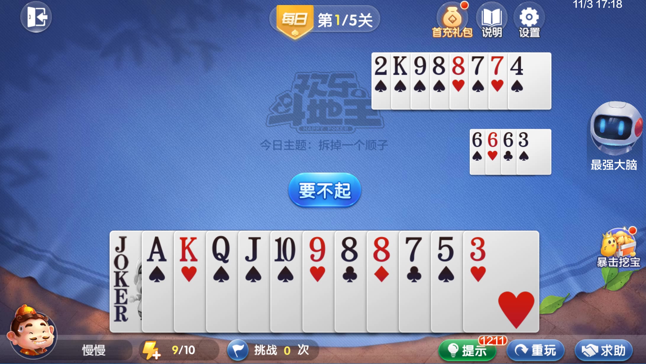 欢乐斗地主 残局 每日挑战 X1QJSS8764&D21199865543