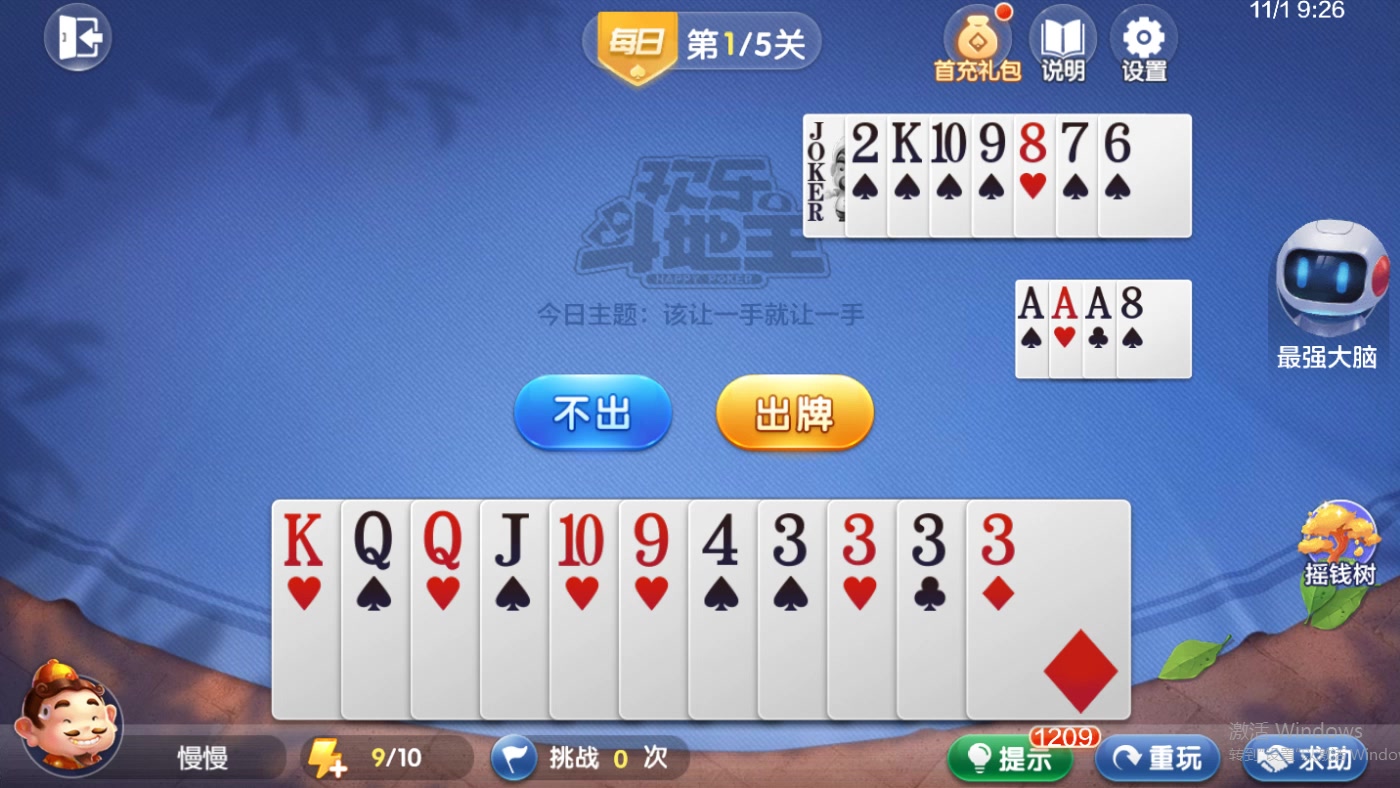 欢乐斗地主 残局 每日挑战 KQQJS943333&X2111KS98876