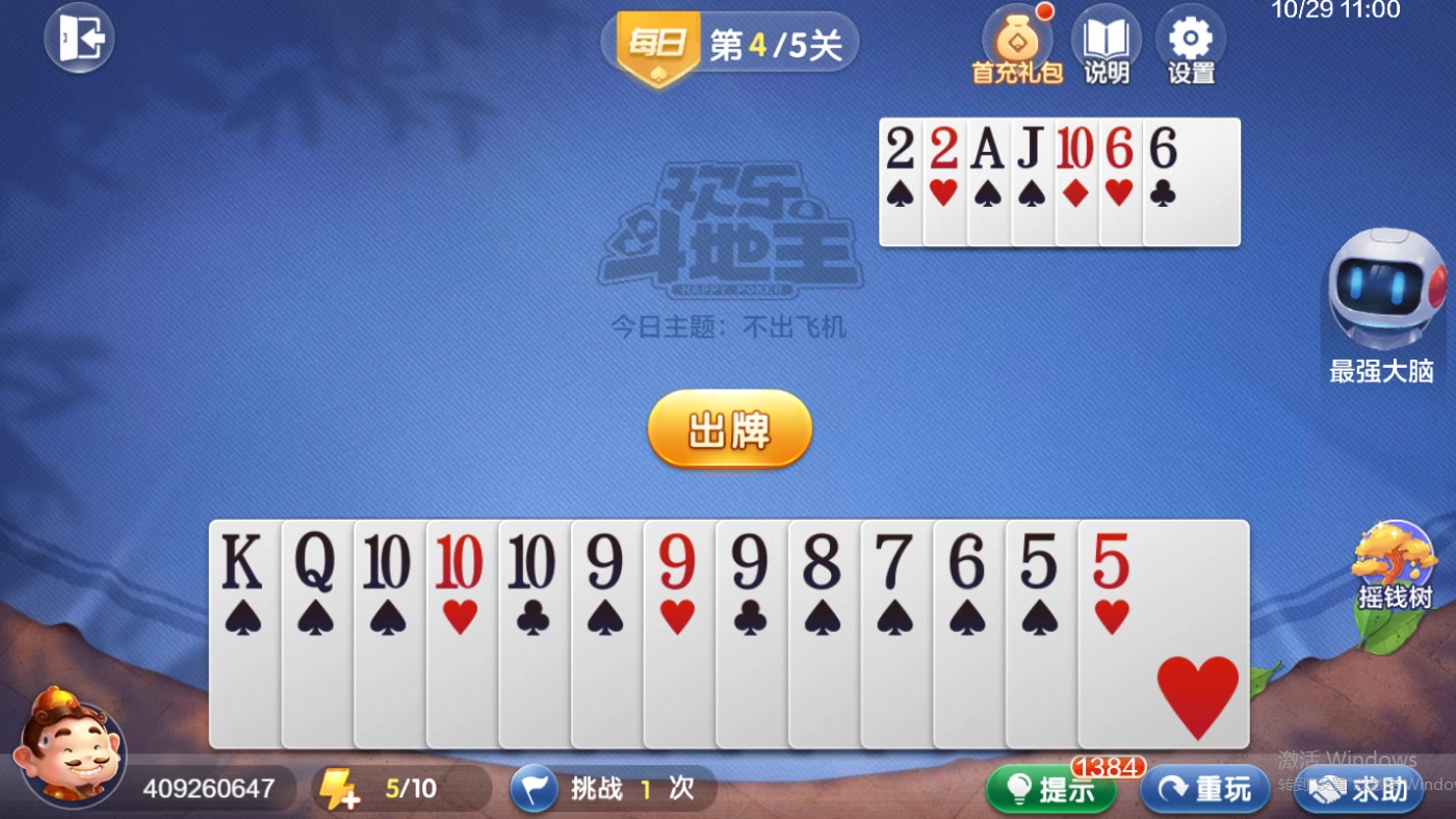 欢乐斗地主 残局 每日挑战 KQSSS99987655&221JS66
