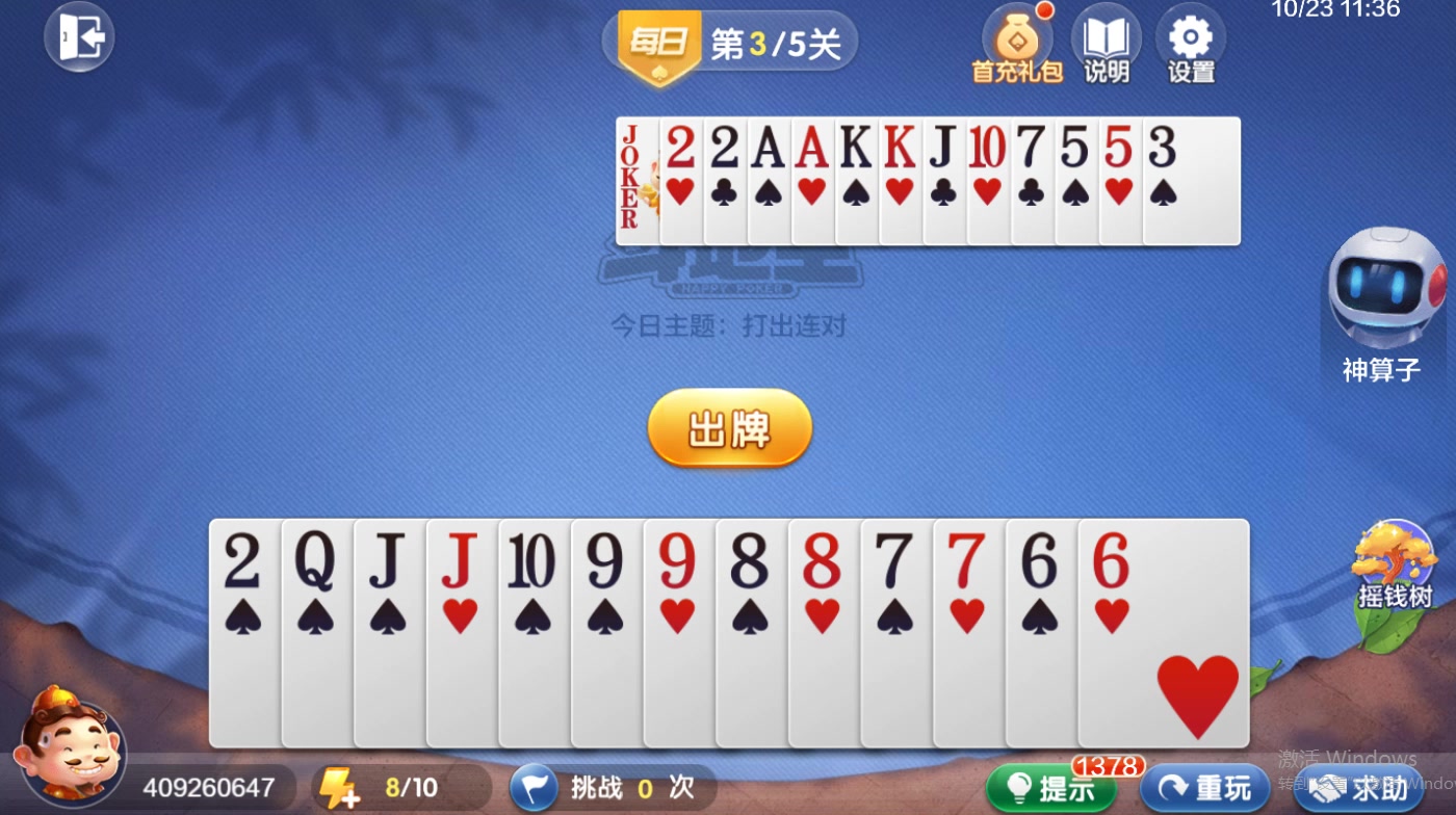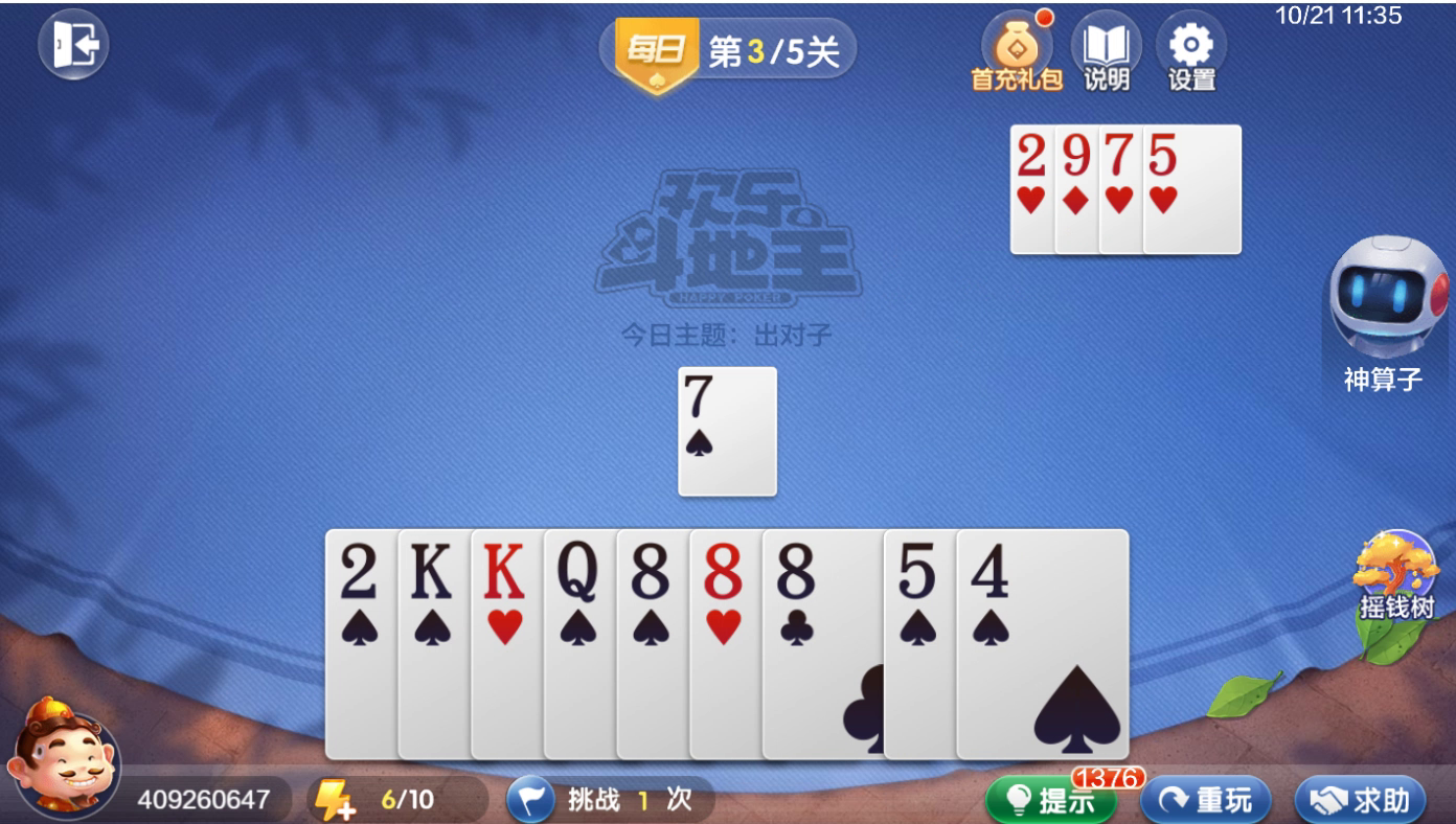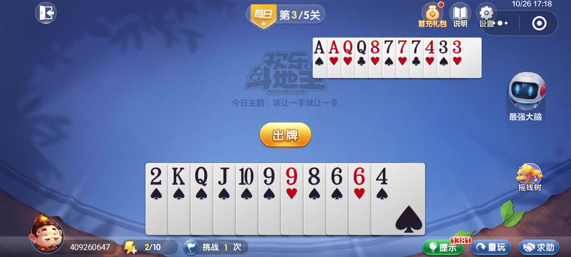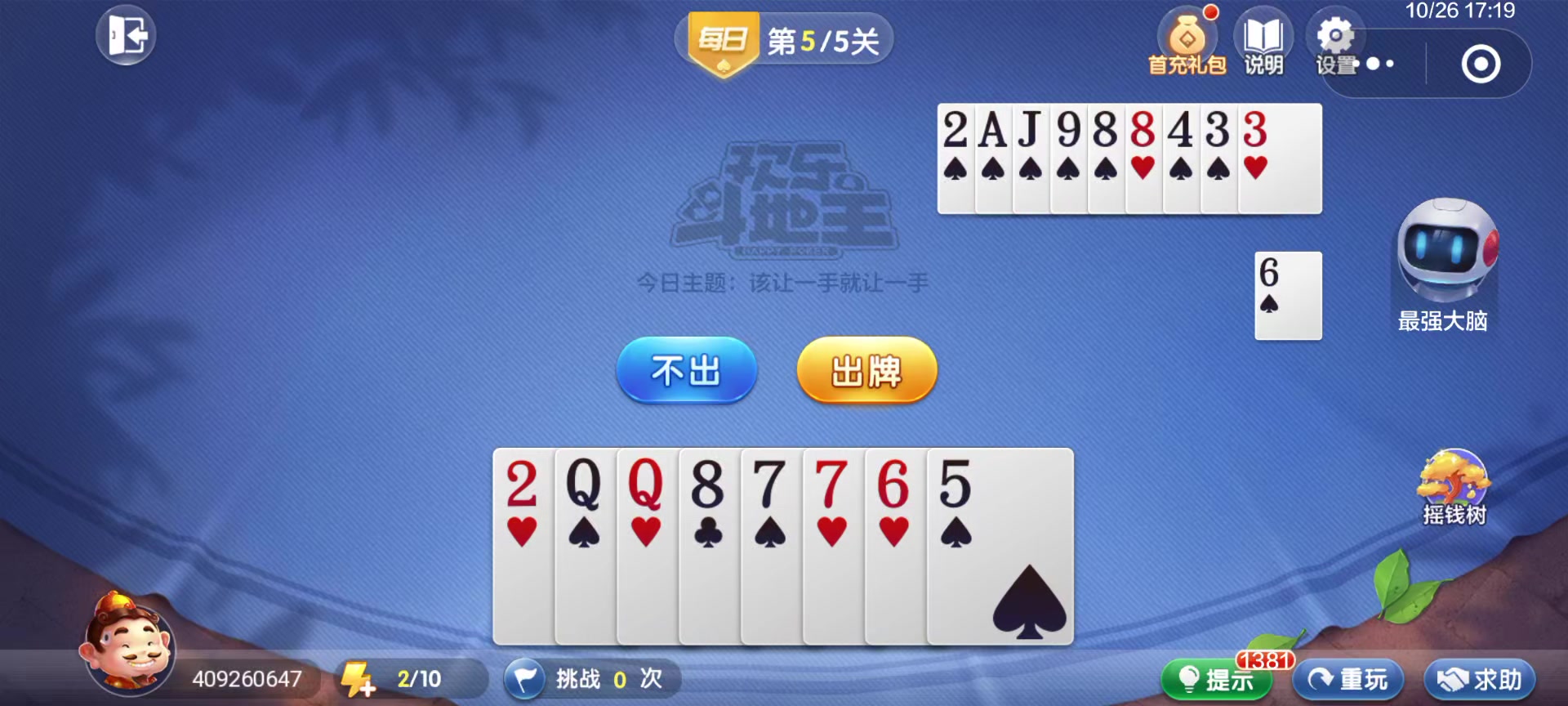 欢乐斗地主 残局 每日挑战 2QQ9887765433&21KJS98766544