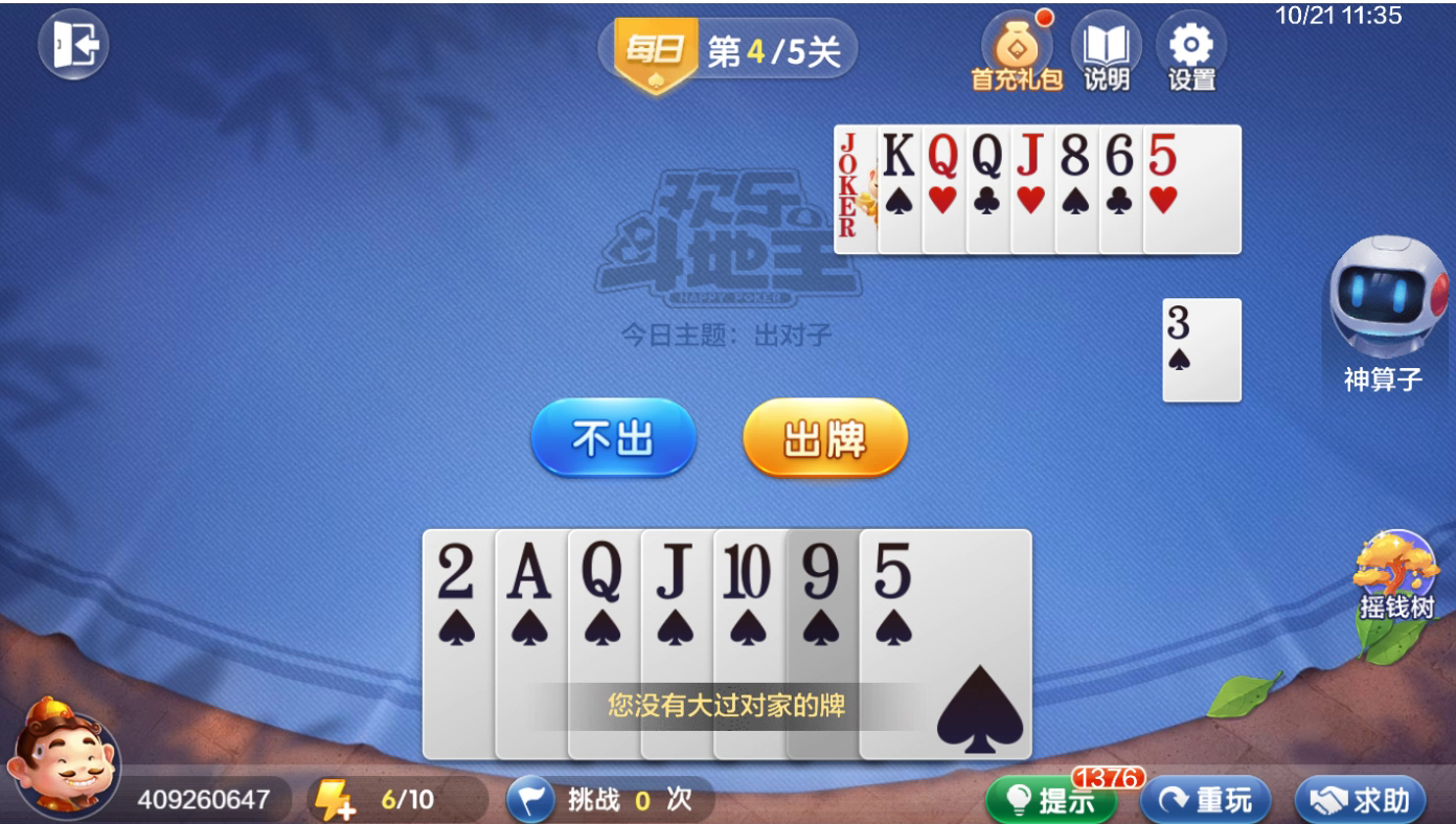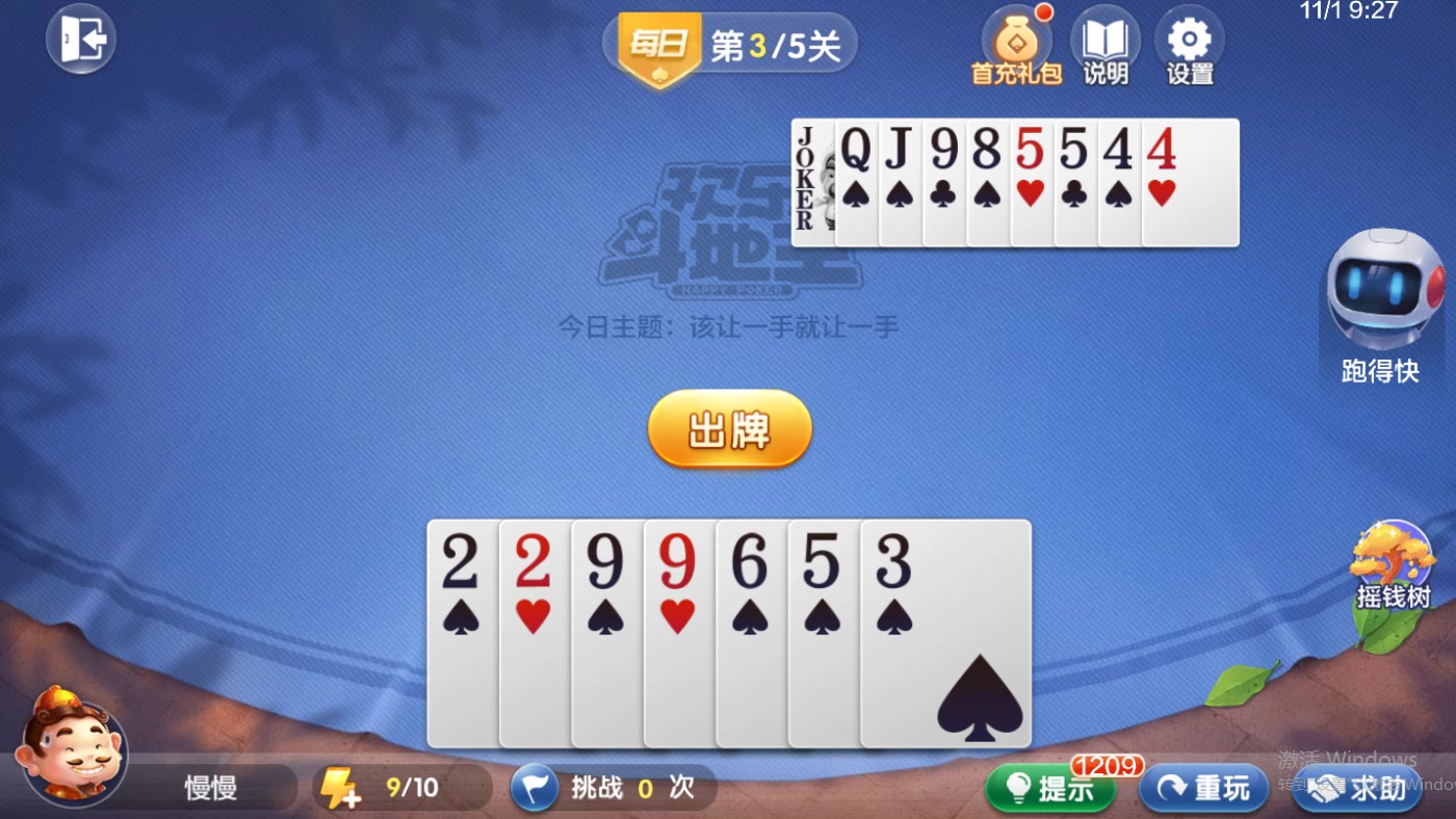 欢乐斗地主 残局 每日挑战 22KJSS9853&211QS9888764