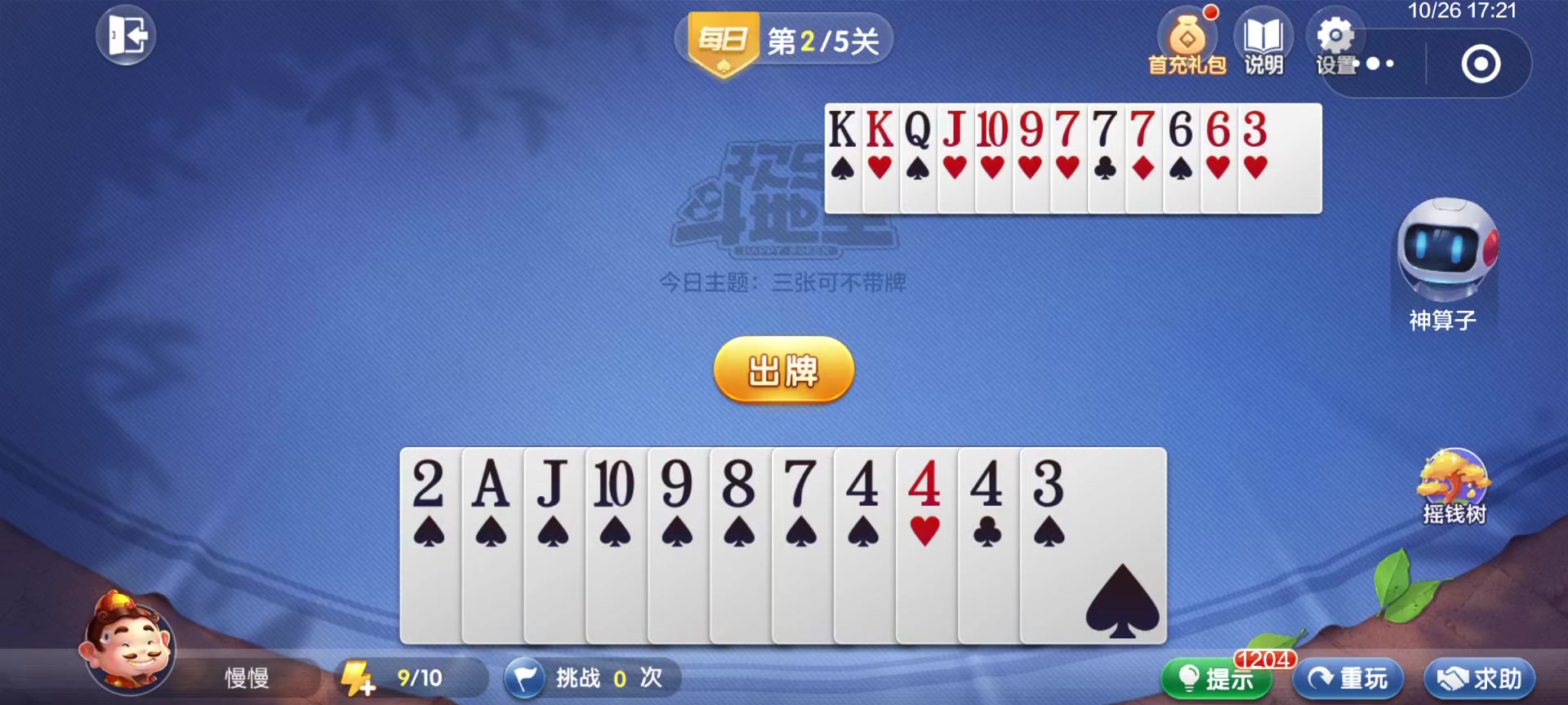 欢乐斗地主 残局 每日挑战 21KJ998665544&DX11QQJSS9654