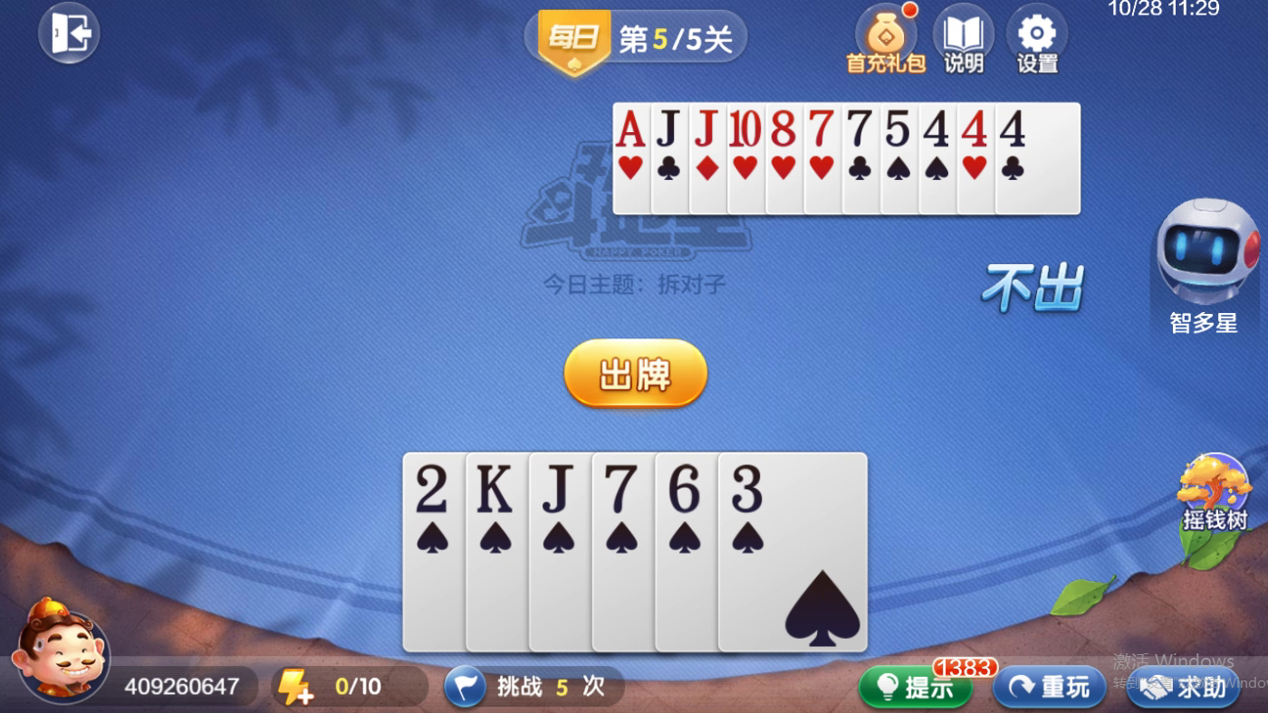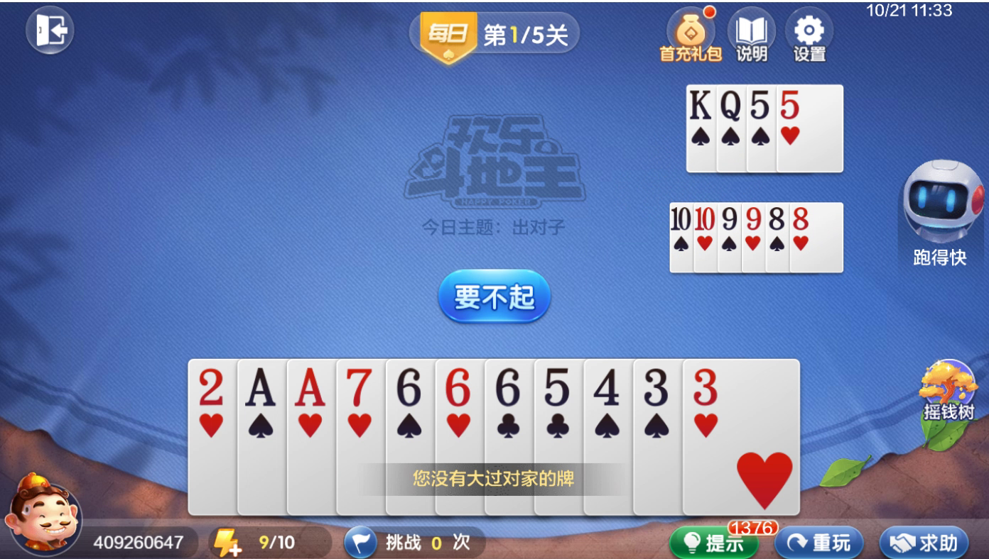 欢乐斗地主 残局 每日挑战 211J76665433&2KQSS9988755