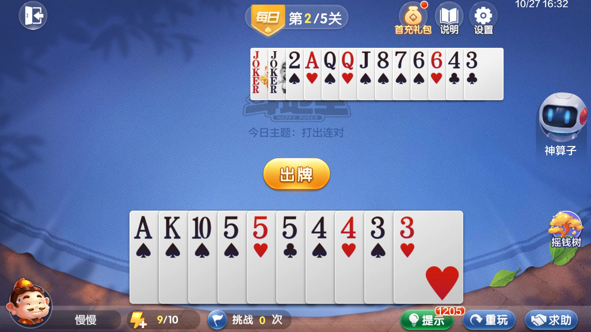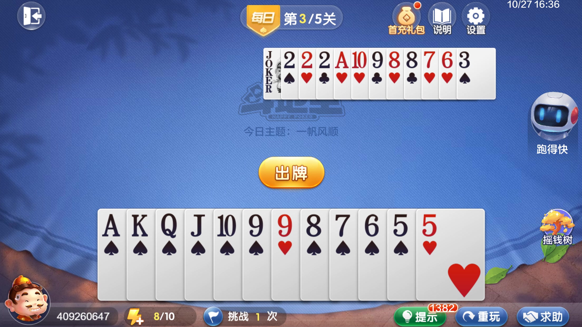 欢乐斗地主 残局 每日挑战 1KQJS9987655&X2221S988763