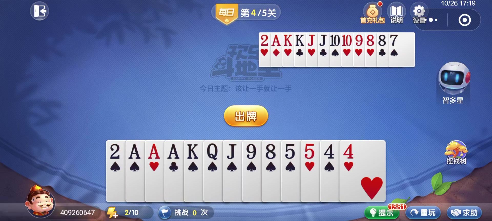 欢乐斗地主 残局 每日挑战 1KS5554433&DX21QQJ876643