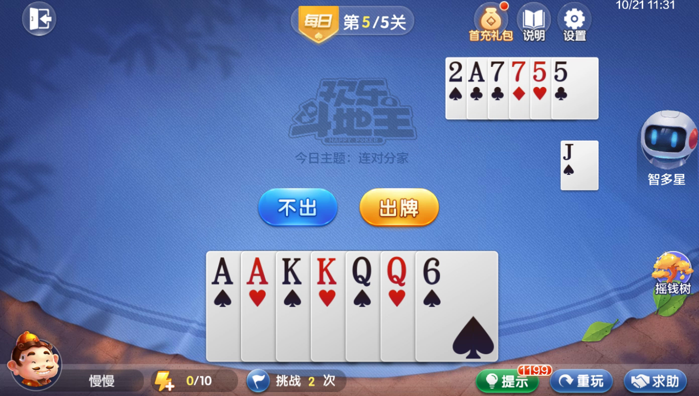 欢乐斗地主 残局 每日挑战 11S9985&21J988775533