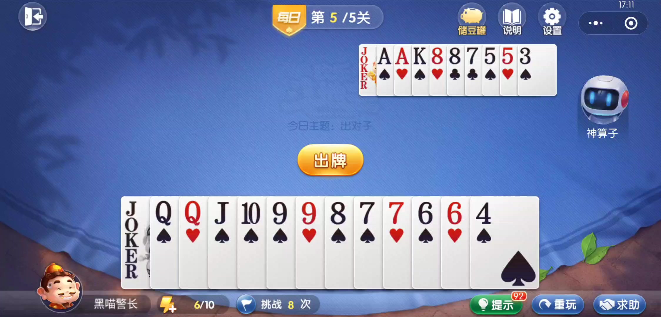 欢乐斗地主 残局 每日挑战 XQQQ77765&D1111KJ99543