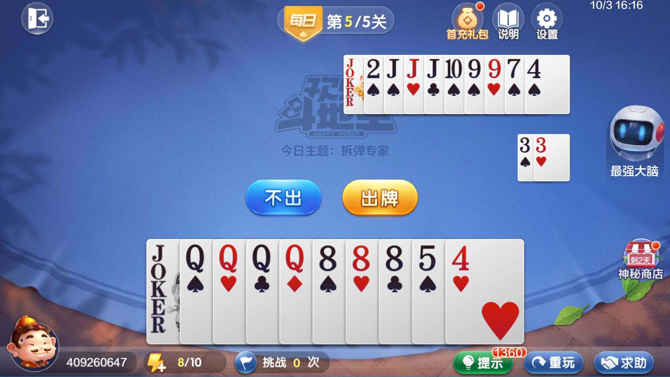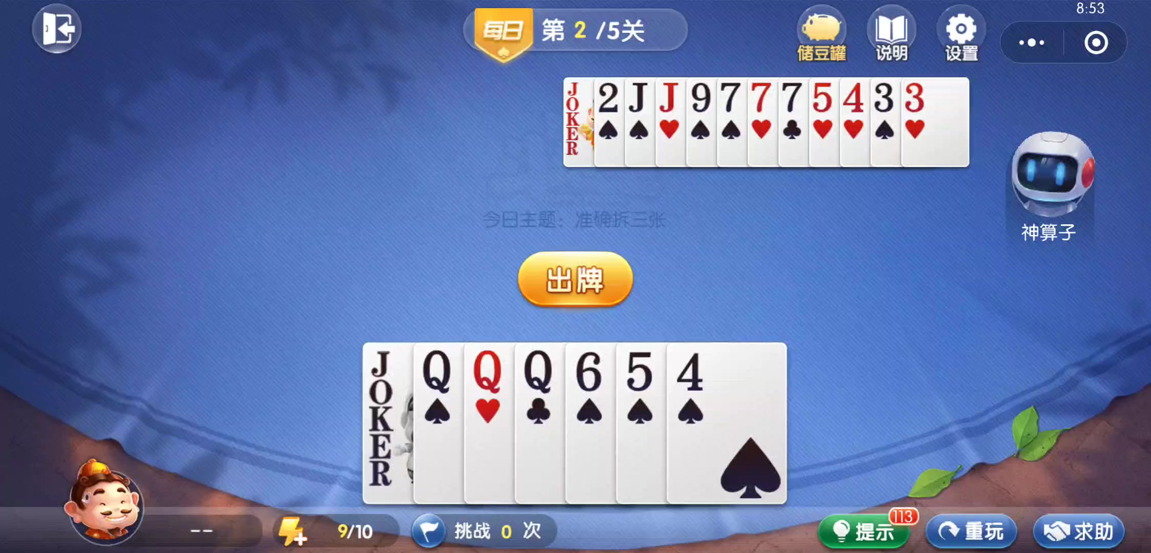 欢乐斗地主 残局 每日挑战 XQQQ654&D2JJ97775433