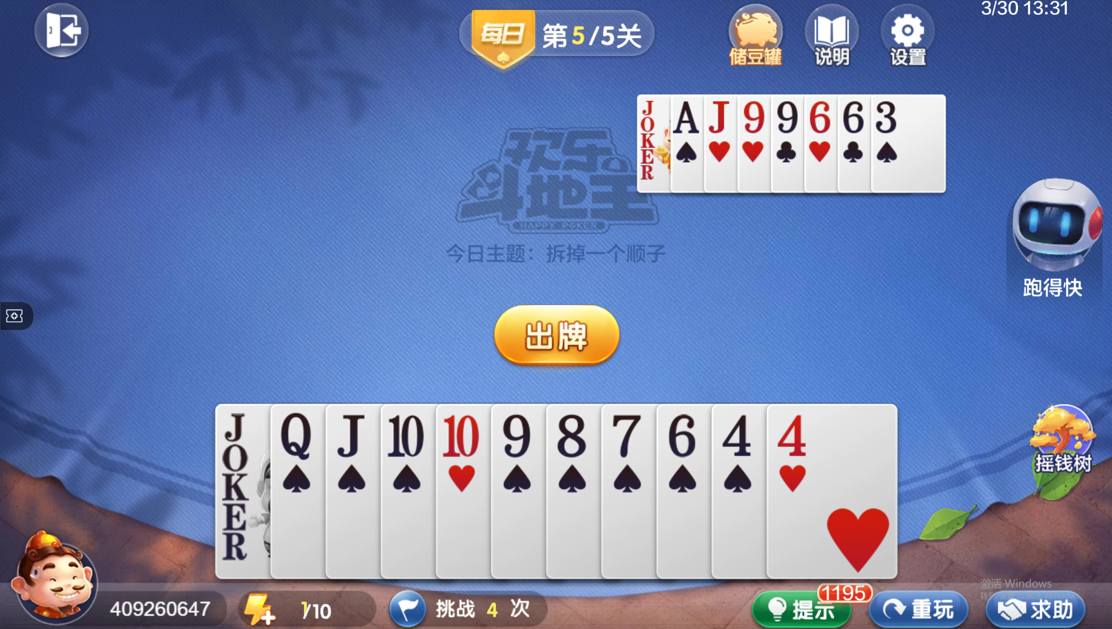 欢乐斗地主 残局 每日挑战 XQJSS987644&D1J99663
