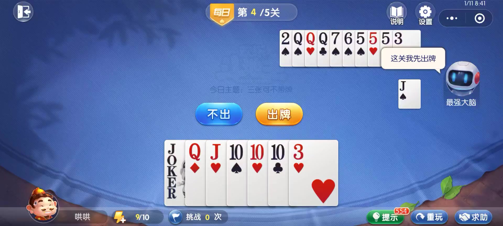 欢乐斗地主 残局 每日挑战 XQJSSS3&2QQQJ765553