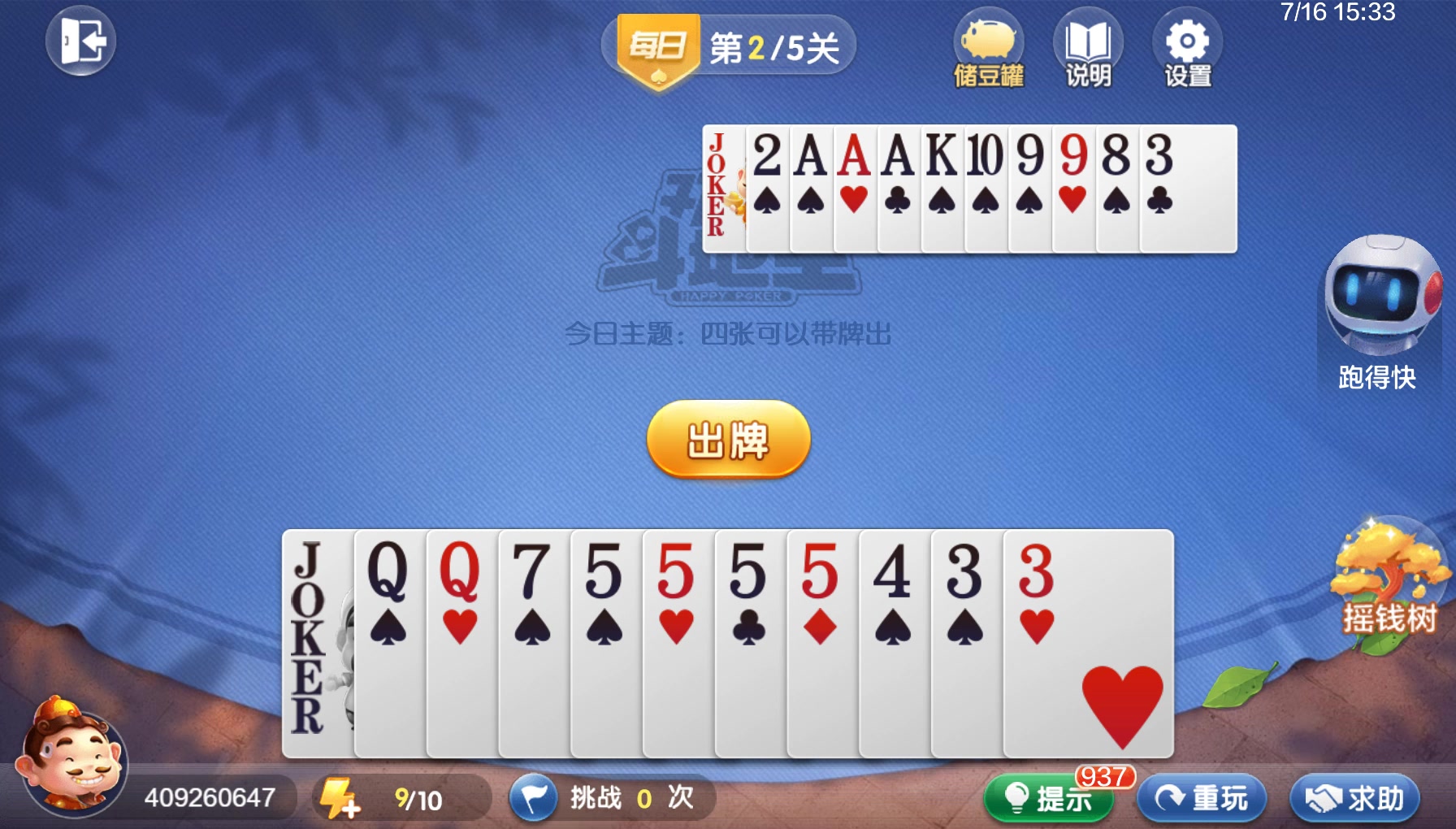 欢乐斗地主 残局 每日挑战 XQJSS9874&221118775433