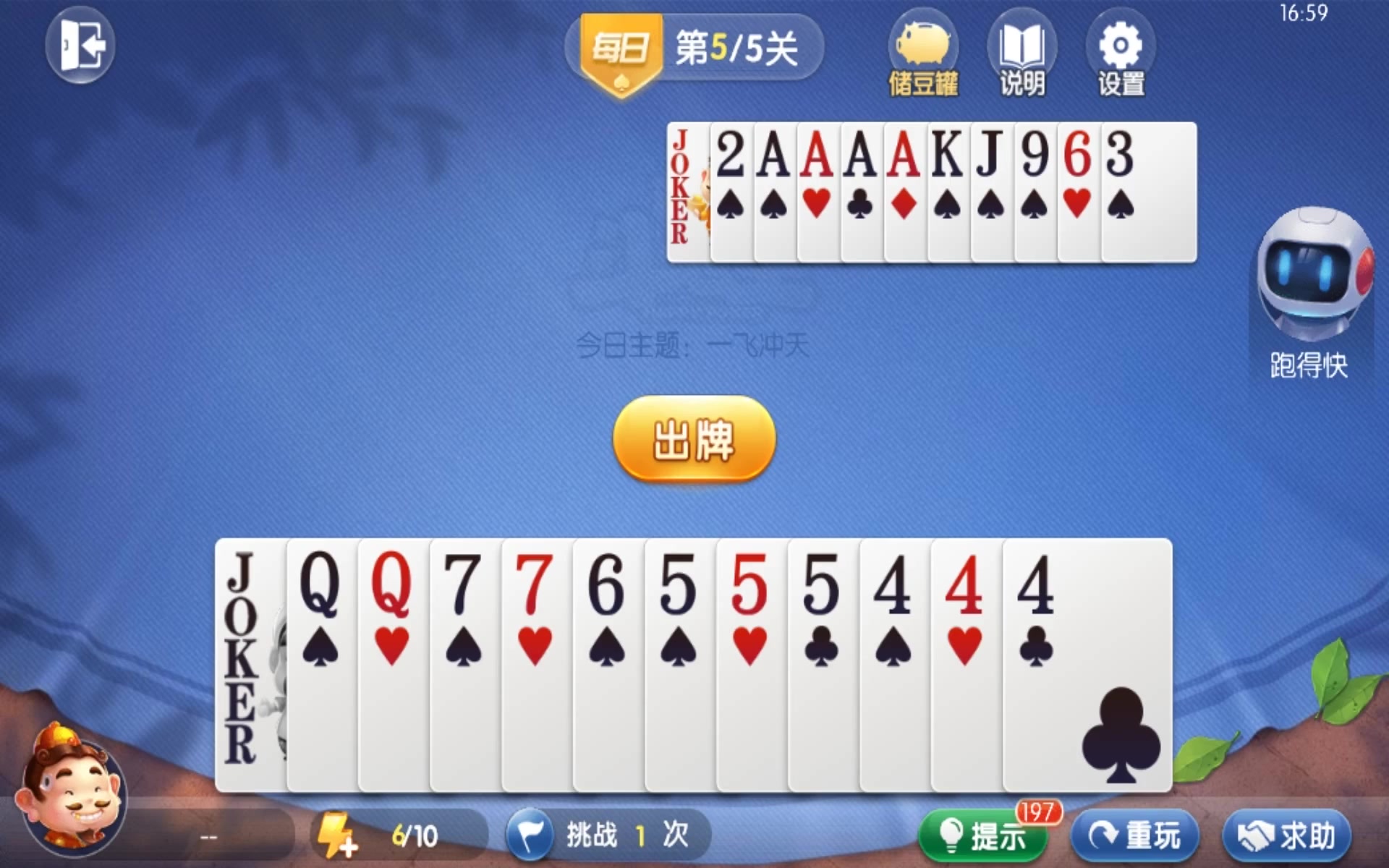 欢乐斗地主 残局 每日挑战 XQQ776555444&D21111KJ963