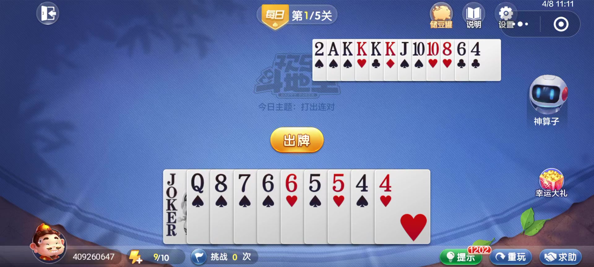欢乐斗地主 残局 每日挑战 XKS87765444&D221JJS985543