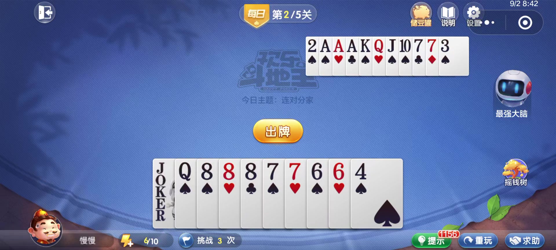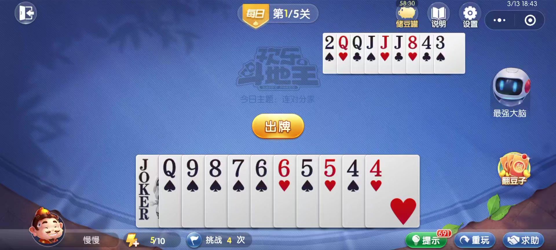 欢乐斗地主 残局 每日挑战 XQ987665544&2QQJJJ843