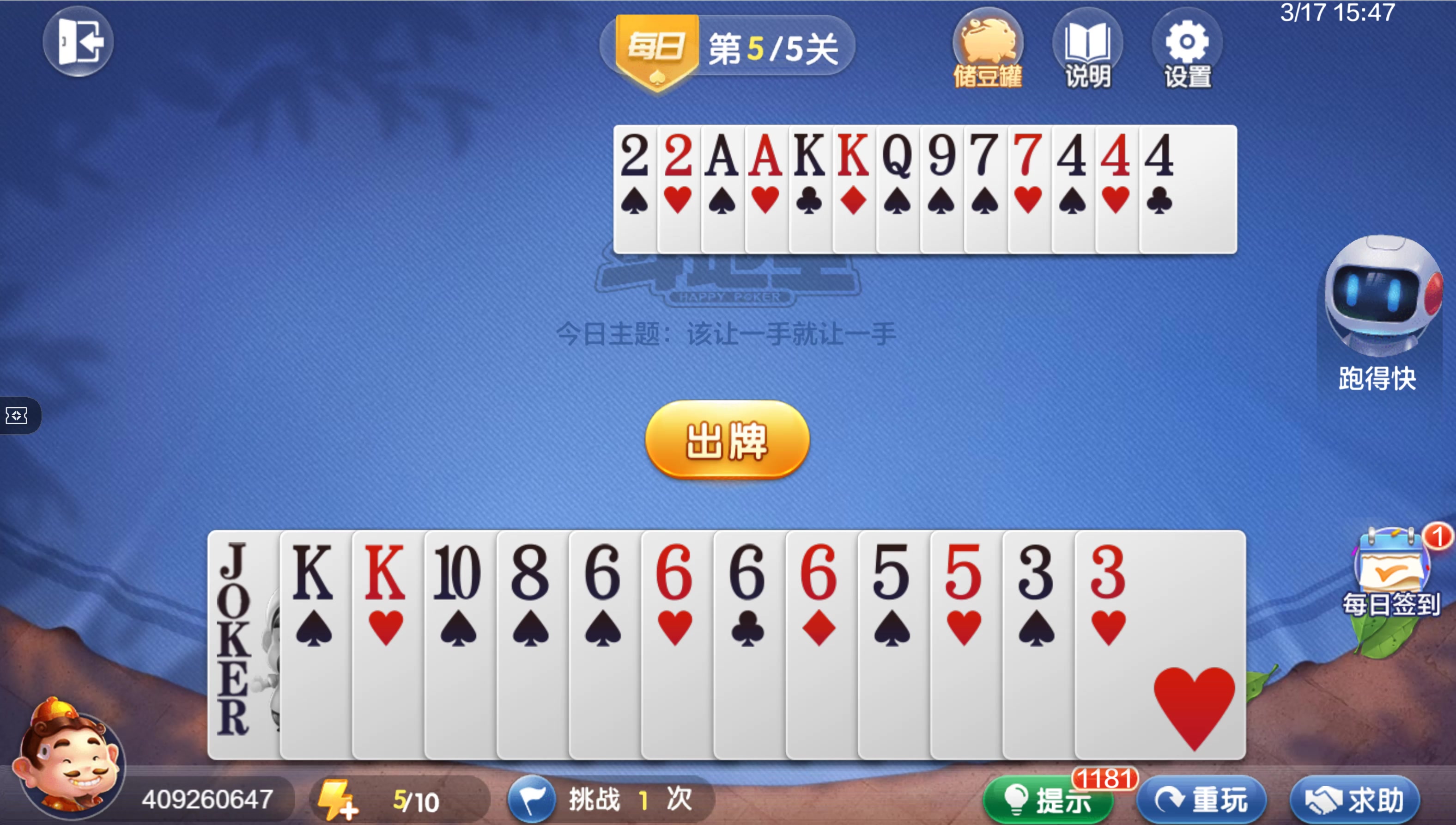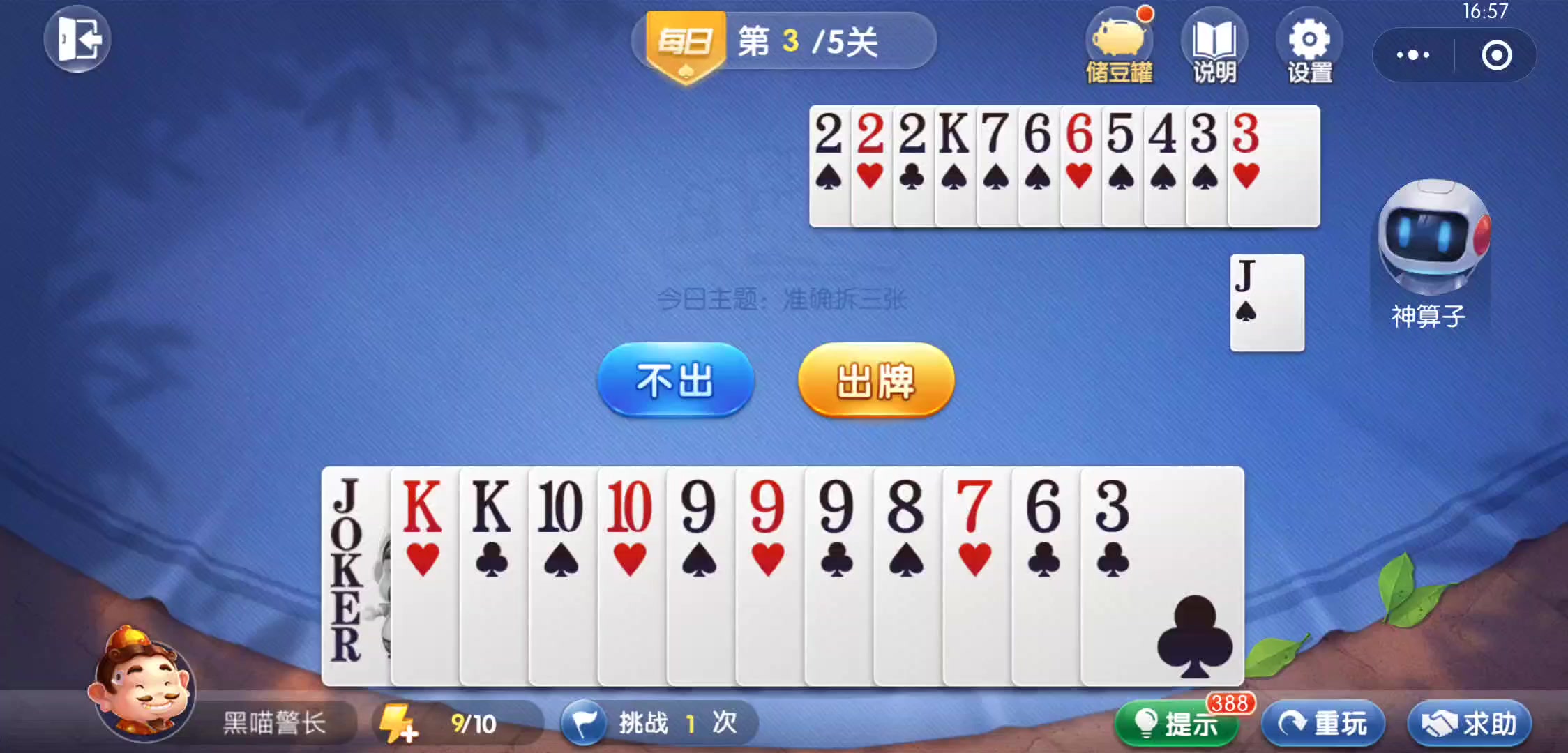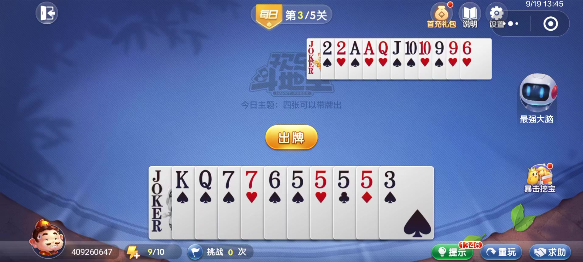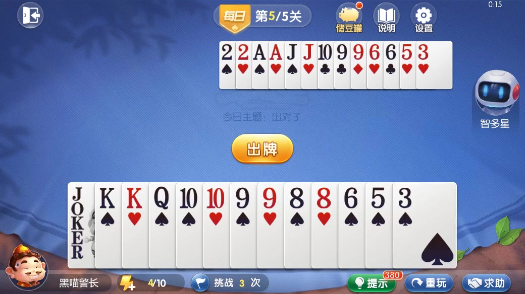 欢乐斗地主 残局 每日挑战 XKKSS9998763&222KJ7665433