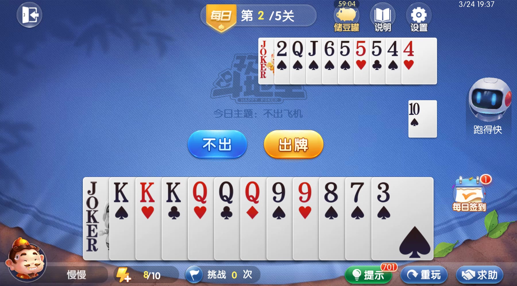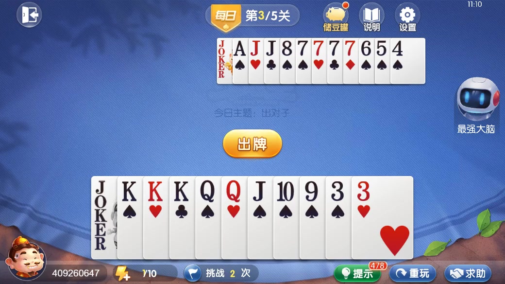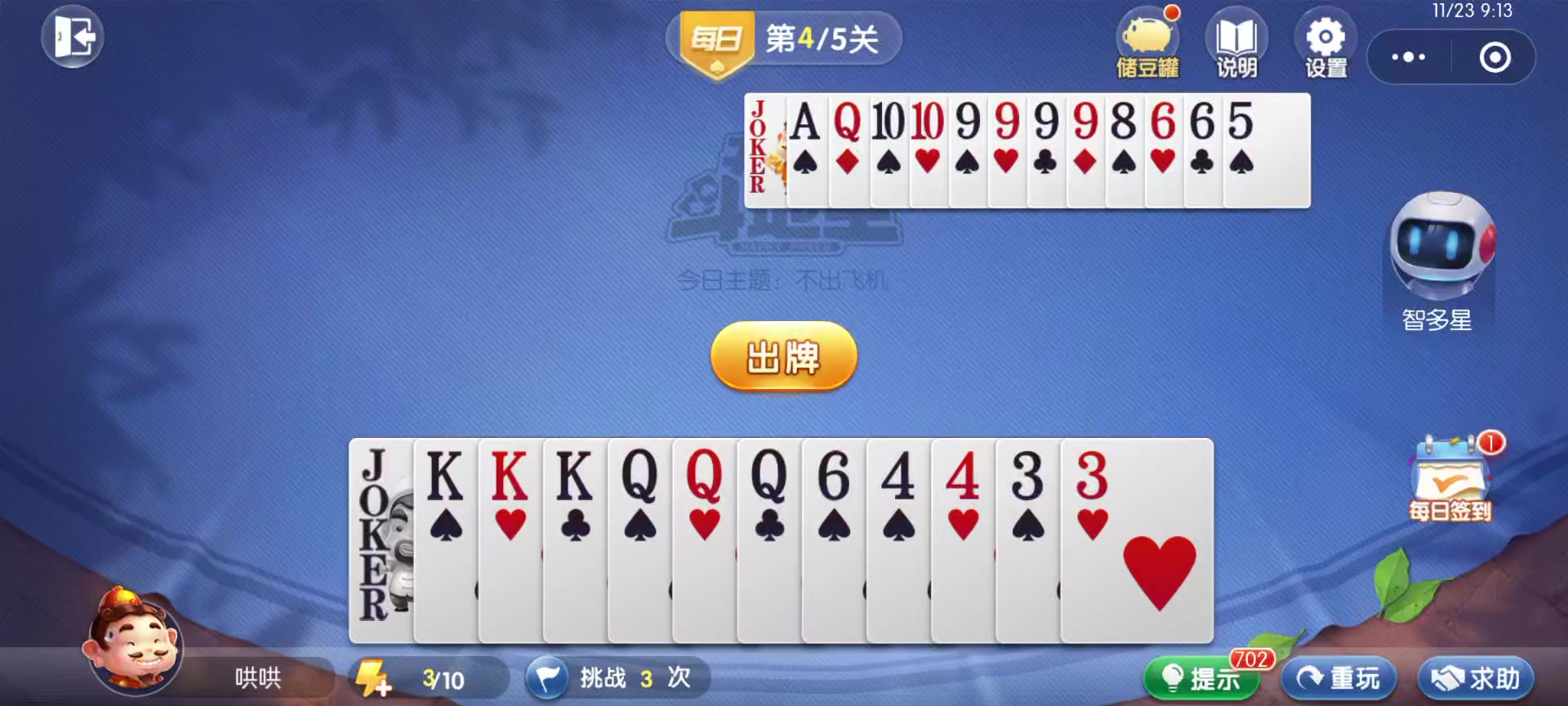 欢乐斗地主 残局 每日挑战 XKKKQQJS933&D1JJ87777654