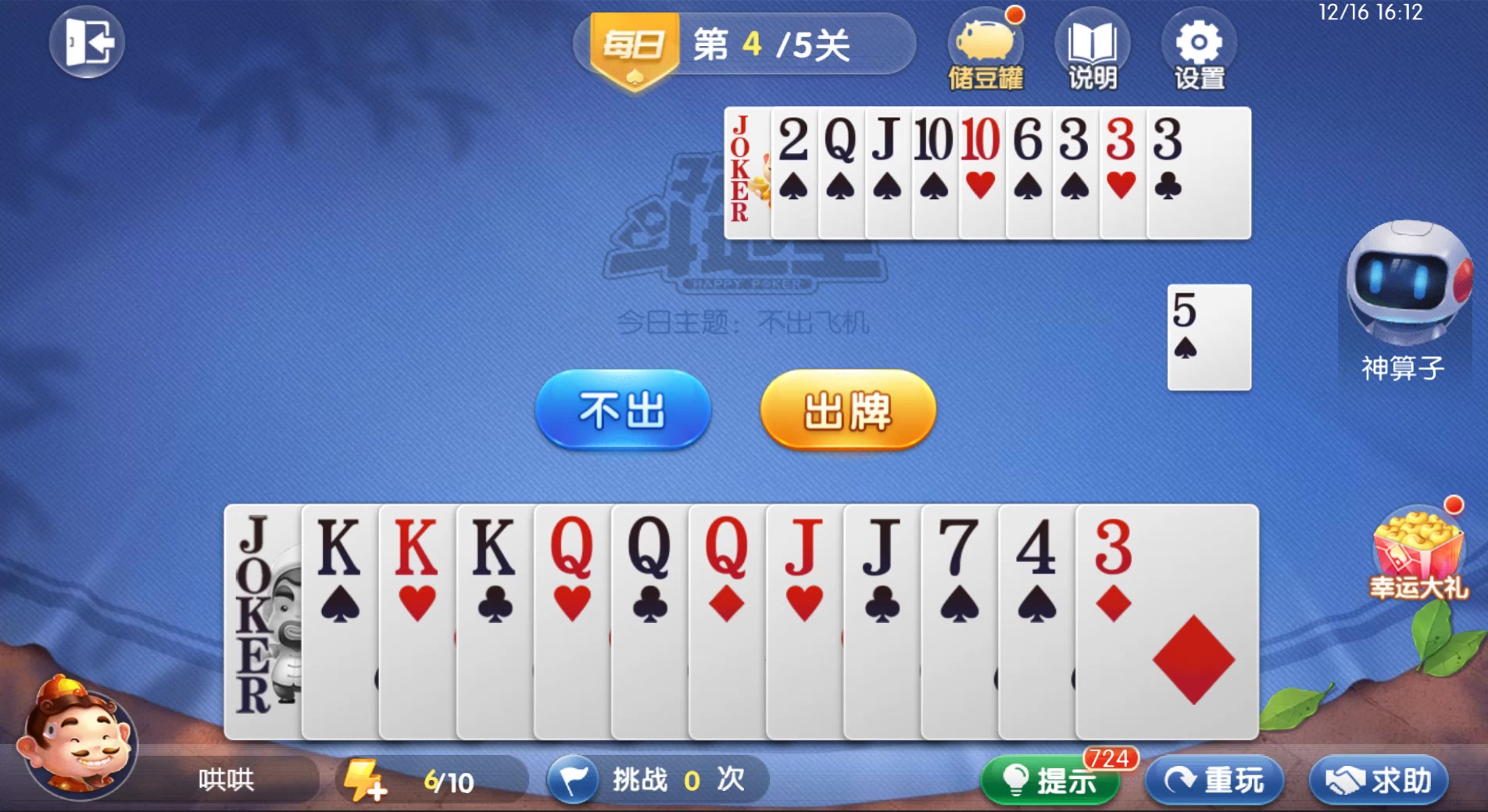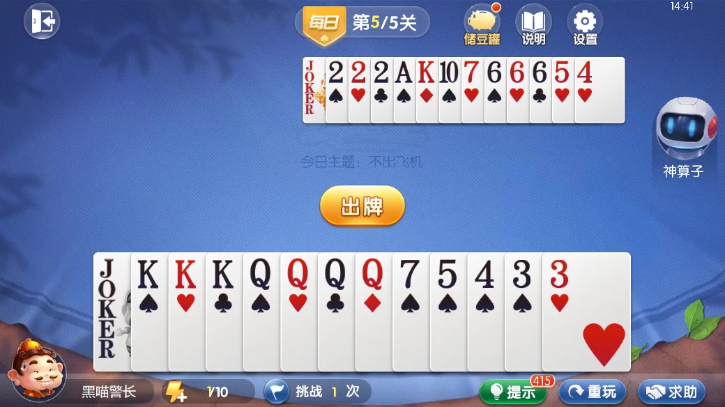 欢乐斗地主 残局 每日挑战 XKKKQQQ64433&D1QSS99998665