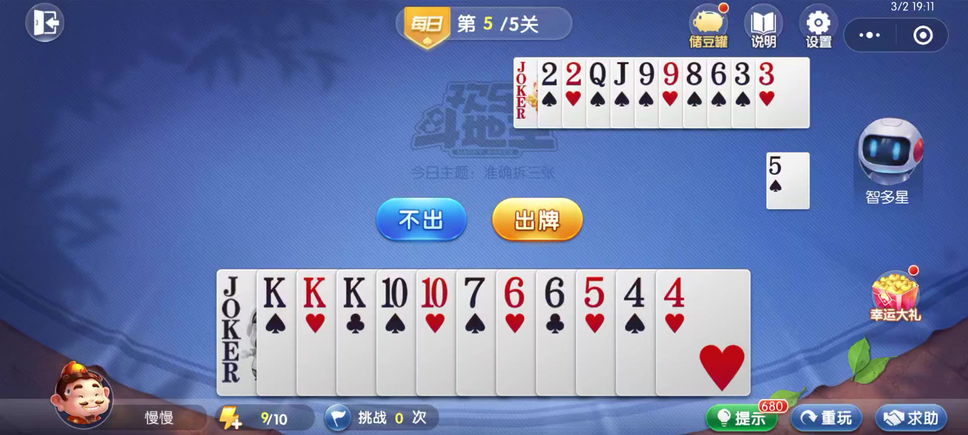 欢乐斗地主 残局 每日挑战 XKKKS877653&2KQJS9655