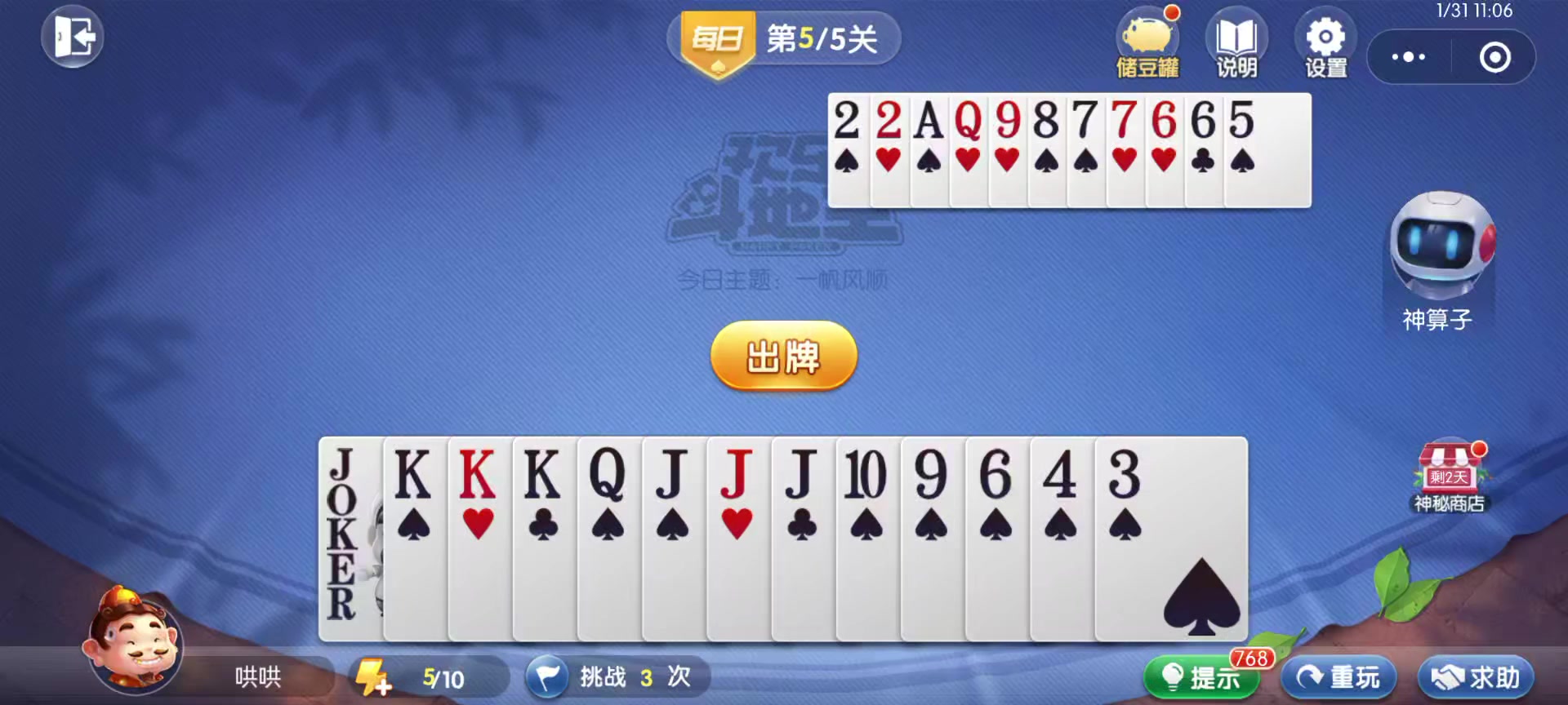 欢乐斗地主 残局 每日挑战 XKKKK877665&D2QS87