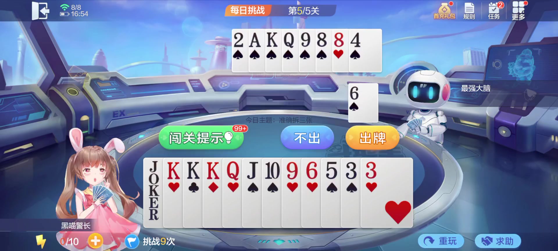 欢乐斗地主 残局 每日挑战 XKKKKQ98544&21QQJS9