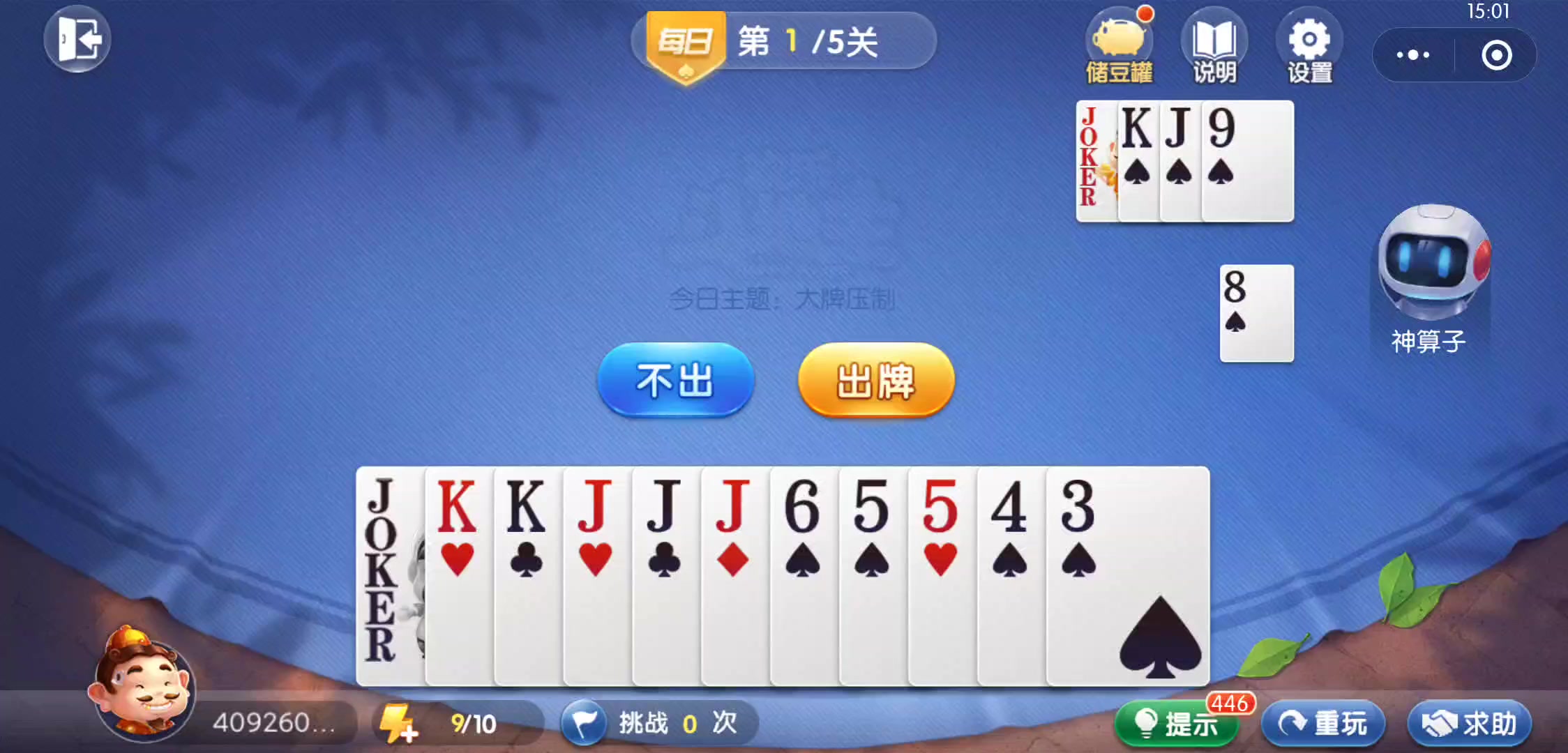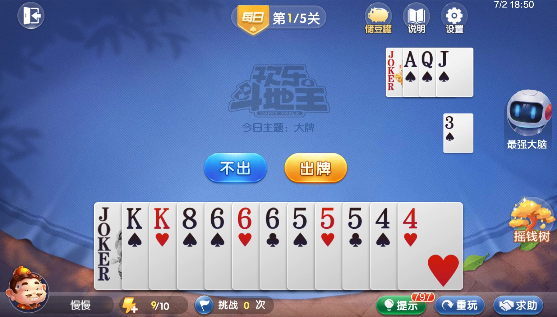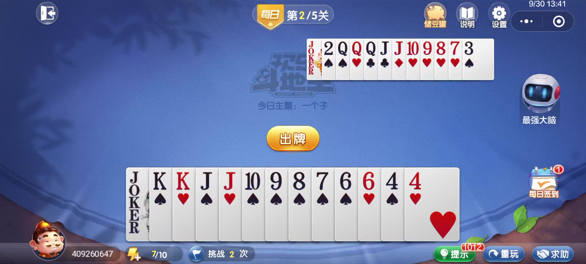 欢乐斗地主 残局 每日挑战 XKK887766&D2S93