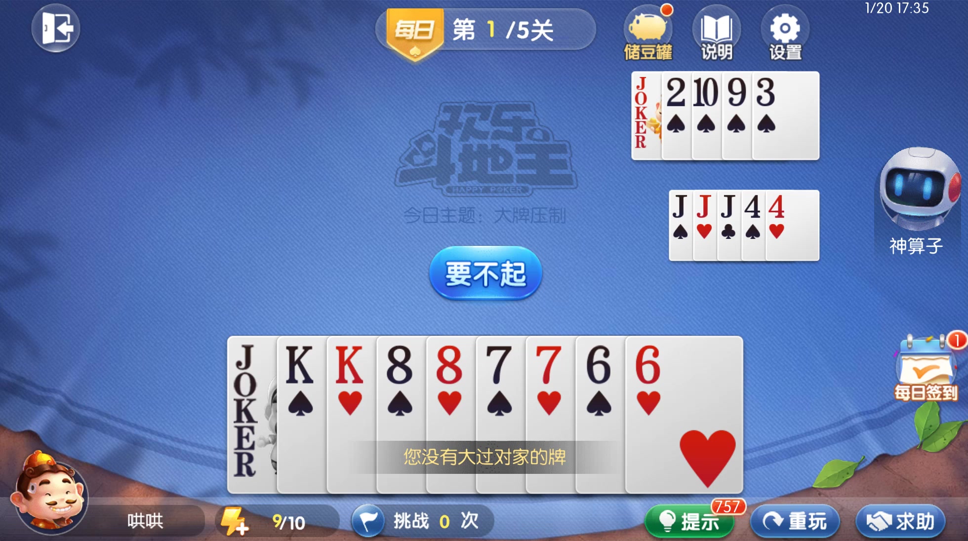 欢乐斗地主 残局 每日挑战 XKKJJS9876644&D2QQQJJS9873