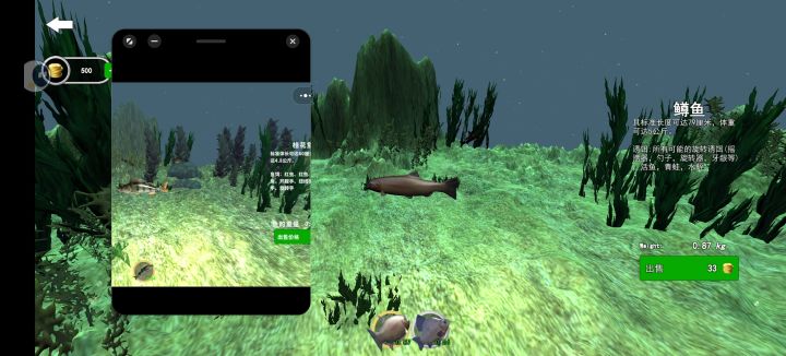 (图1:游戏中的鱼类售卖界面和相册微信小游戏中文字和鱼的对比。图2:训练场景纺纱钓鱼。图3:微信小游戏中第二个地图纺纱钓鱼[此时开启最高画质])