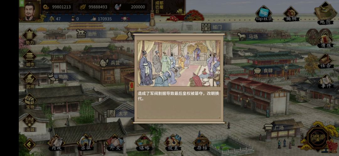 也可以让吕布结婚,然后生后代,后代大概率会继承父母的特技,子女出仕前一年记得存档,一般都是二月份出仕,所以上一年十二月份的时候手动存档,出仕后子女如果没有继承到吕布的特技,那就读档,直到有为止