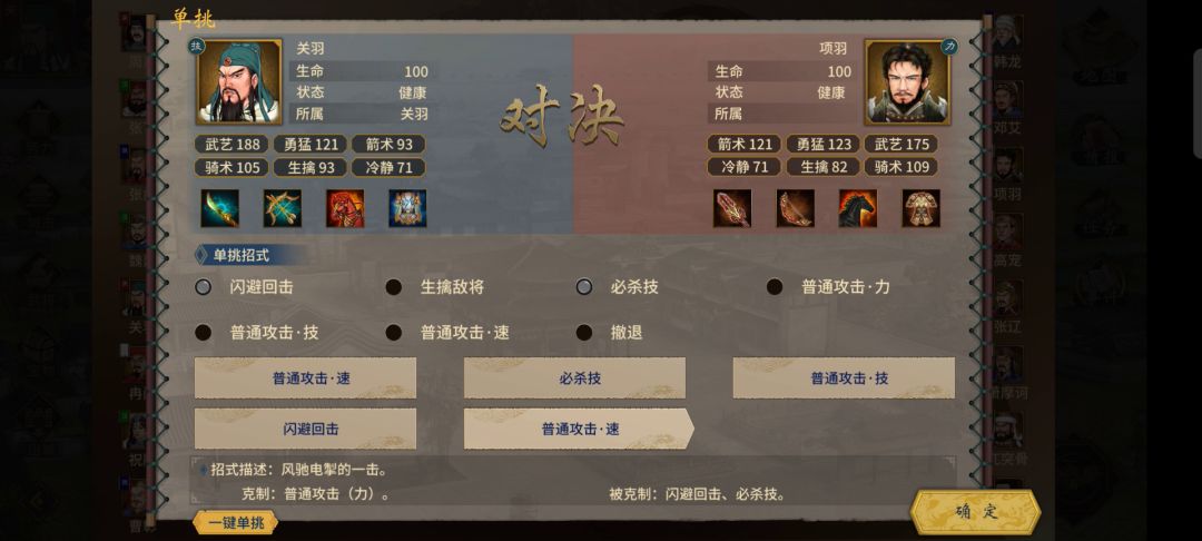 闯阵是计谋,在前期没钱没粮还没兵的时候很好用,但前提是帐内有能打架的武将,有条件还可以带个计略高的副将加闯阵几率,562难度下我刘备计略82,概率一中一或二中一,挺可观的,还只需要消耗15气力,用多了以为自己是闯王[表情_微笑] 例如你是190的刘备,袁绍来打你,主将是不知名小卒,你用关羽出战大概率打的赢,打赢了就是图三,己方+20士气,敌方减-20士气 如果对方主将是文丑,你用刘备和他打,那大概