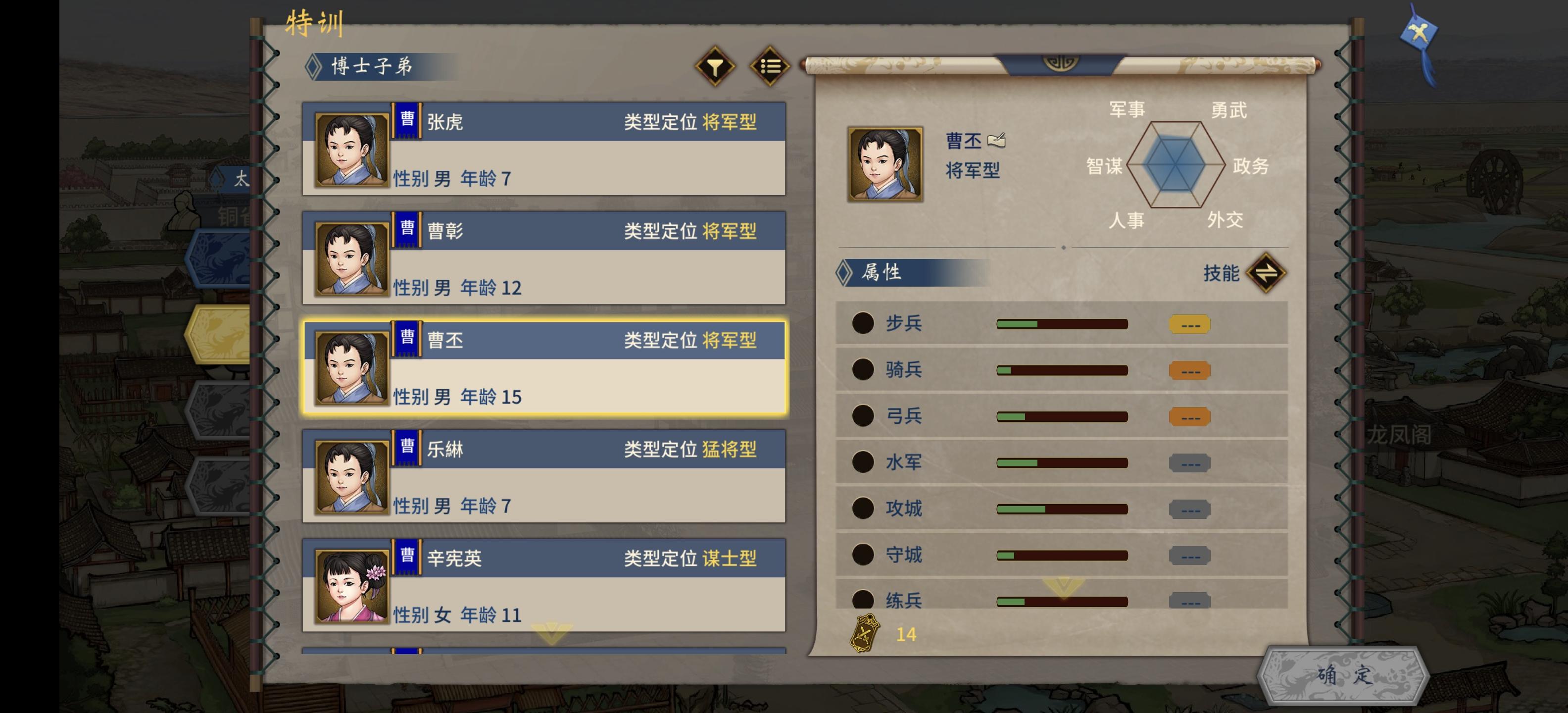 汉末霸业近期新更新了一个DLC《英雄的黎明》 看到群里有很多人都不会打 本人尝试了很多在不动存档的情况下是打不过的 英灵是打不过的 龙风阁我没养子嗣所以说没有试 我这个办法是一个笨的方法 也是在论坛的一些评论区翻找看到的 我来给大家说一下一:使用游戏内自建武将 创建12个全满型的武将 其中六个 特技分为 运筹帷幄2个 天下无双2个 鹰视狼顾1个 箭无虚发1个 然后特性 把无当飞军 连弩 象兵加上