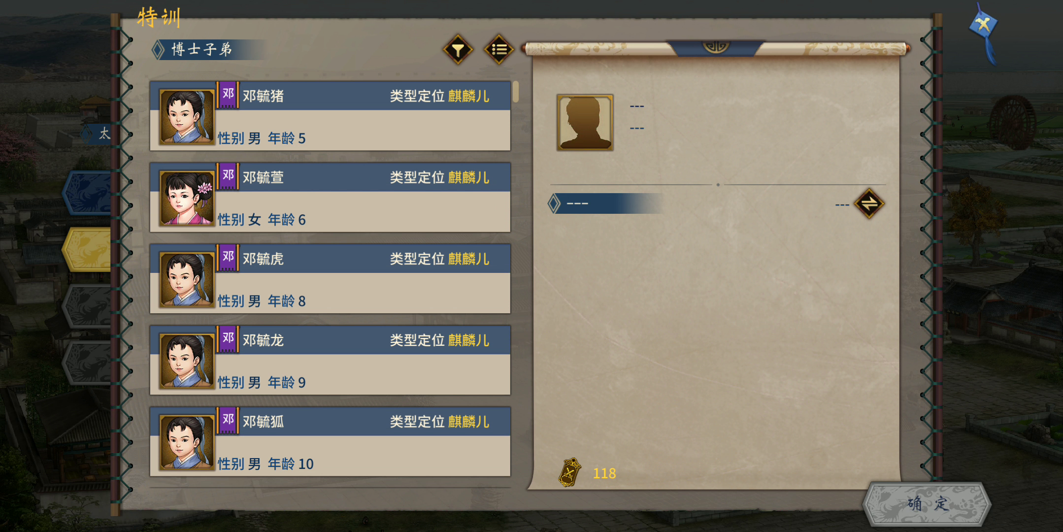 189年玩到202年,目前子女一览。果然,打不过就拼命地生就对了,等我6个天火出来,一统乱世!