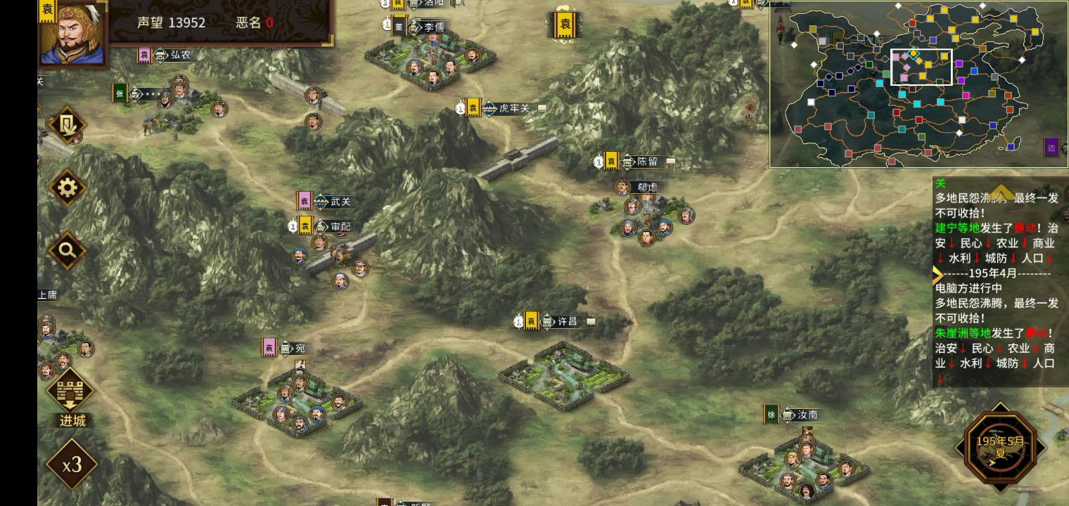 本打算用184韩遂,开局不断用演示,不断切换君主流放关张赵黄忠,等马超出生凑个前期五虎将,可凑齐了发现官职不可以自动任命,而且只可以控制主城,分城像ai一样自动打,并没创建军团