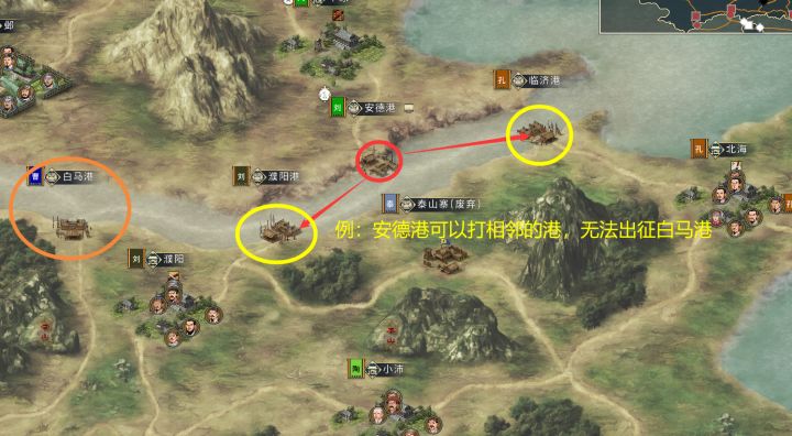 (电脑出征判定仅能攻击相邻的港口,保留玩家通过更改出征目标绕道攻击的设定)