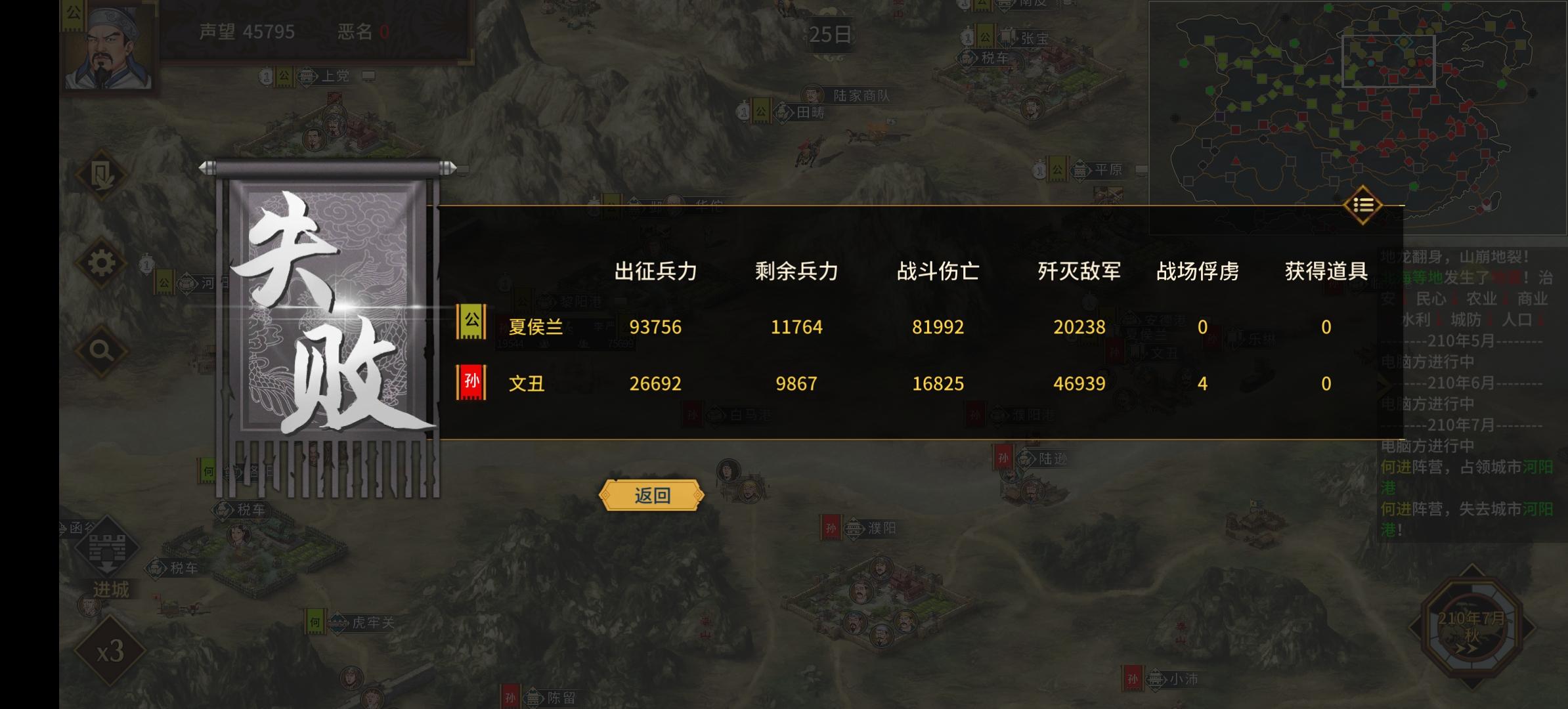 我用自动战斗打了好几场,发现一个严重的bug,只要开启自动战斗没有高于10倍的兵力是打不赢的。地盘大了以后有不能照顾到每一个战场,9万打2万输了,我已经很生气。二场5万打8千输了我还是防守方😤,才意识是游戏的问题和战损比明显的不正常。希望开发者尽快改进吧!!!