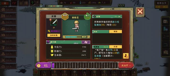 第2种是那个医院8级好像也要金币,多少金币有点忘了。金币给完,看过广告后每天应该是增加5%,然后你让一个感染度为0的去协助研究。成功了增加10%的进度。失败了,你这个感染度变成100%第2天天亮时多给一瓶水,然后它的感染度就变成92了,没有变异风险