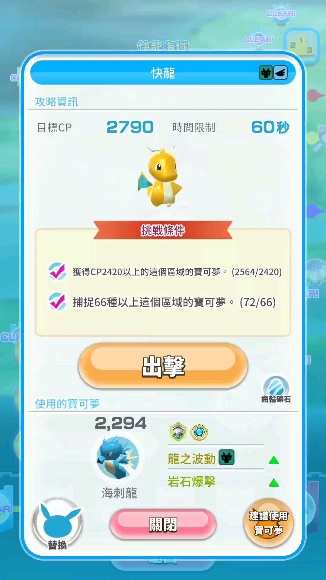 基础篇:基本操作:自动行走,但是可以靠翻滚强行赶路。可以手动攻击敌人,也可以挂机让他自动攻击敌人。可以蓄力攻击,伤害为3倍左右。击败深处的头目,即可过关。CP:CP相当于战斗力,总之越高越好。CP只能通过镶嵌齿轮提升。如果你的宝可梦CP过低,是时候放掉然后抓一只更高的了。如何捕捉宝可梦:击败任何宝可梦都有一定几率掉落除非以下两种情况宝可梦自身冒星星你让他冒星星(物理)这两种情况是必掉的。技能方面:每只宝可梦只有一个技能。并且属性不一定是本系。技能的稀有度决定了宝可梦的品质。普通:击败后有白色光圈,红白色扭蛋。技能1-2⭐稀有:击败后有蓝色光圈,蓝白色扭蛋。技能3⭐超稀有:击败后有金色光圈+镜头拉进特写,金色扭蛋。技能4-5⭐普遍来说,蓝色和金色的CP比红色的高,但是金色的CP不一定比蓝色高