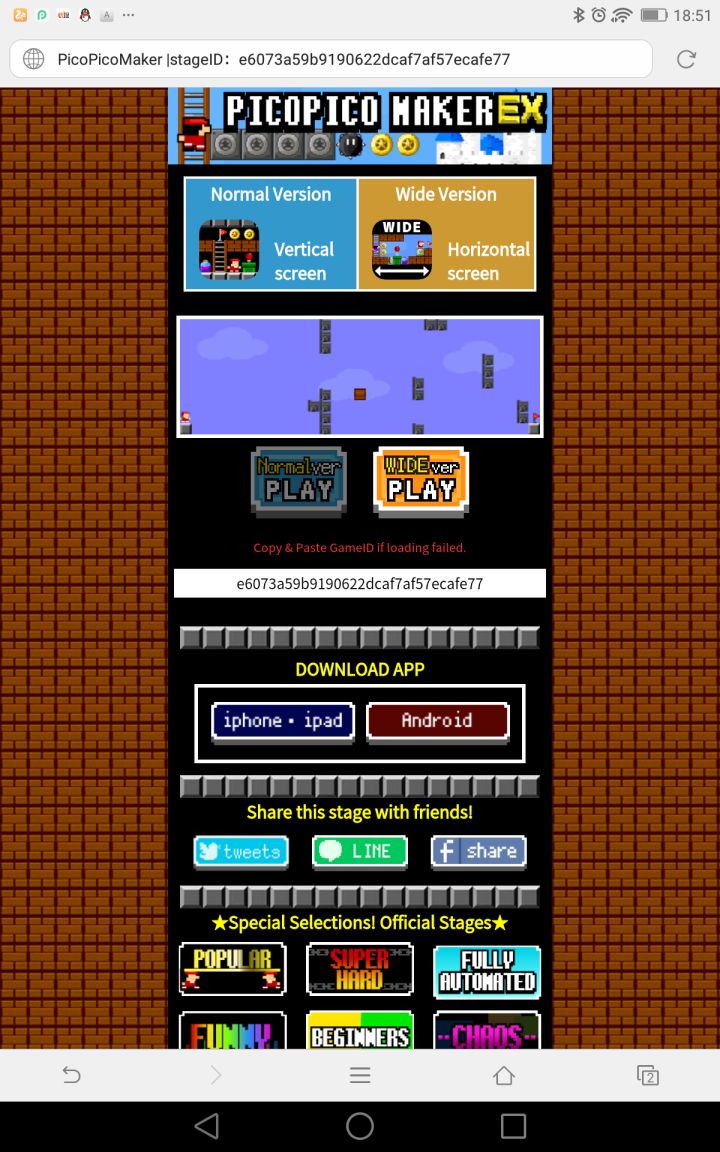好多萌新打不开别人的图,说一下怎么用别人发的链接打开地图吧,先拿我这个做示范首先,复制粘贴到浏览器上然后会出现这个,点击那个play,就可以了另外推荐一下楼主做的渣图,无bug,亲测(ー_ー)!!http://piko77.com/en/game.php?id=82dbaefa857e9d50e0e46303cef03664http://piko77.com/en/game.php?id=