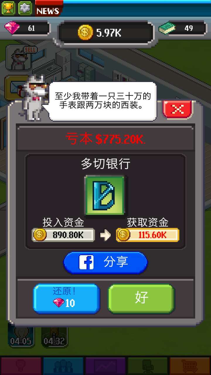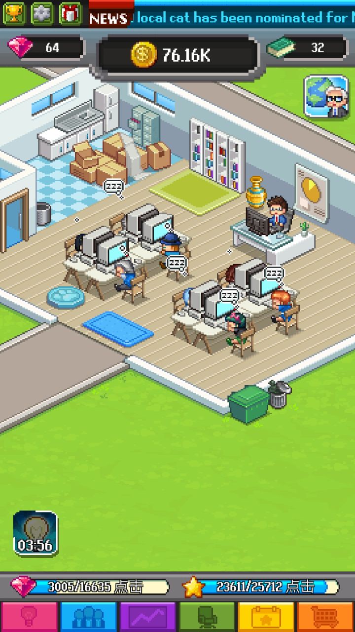 猫叔是开罗游戏系列的粉丝,所以当看到《点点亿万富翁》的截图时,整个人都燃起来了,因为它实在跟开罗的画面像到一定程度。不过事实上虽然它也是一款经营游戏,但是更多的像是放置类,可能你玩过《点杀泰坦》这种粗暴的通关型放置玩法,不过相比起来《点点亿万富翁》的乐趣就更多了,不信的话一起跟猫叔看看吧。如果你也是开罗系列粉丝的话,我觉得你也一定会误认为这是开罗系列的新作品,像素风、员工们嗨起来的热血特效、一个