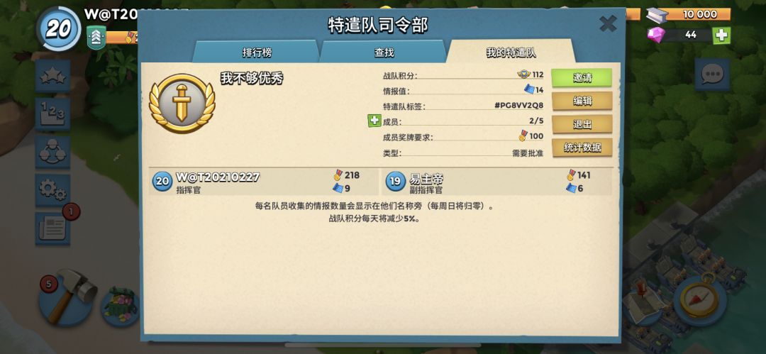 老玩家回归 目前刚跟特遣队另外一个玩家回归一个多星期 主公 重新组建小队火速发展中 特遣队:我不够优秀 标签(#PG8VV2Q8)目前只组五人队迅速扩大中 后续在增加特遣队名额