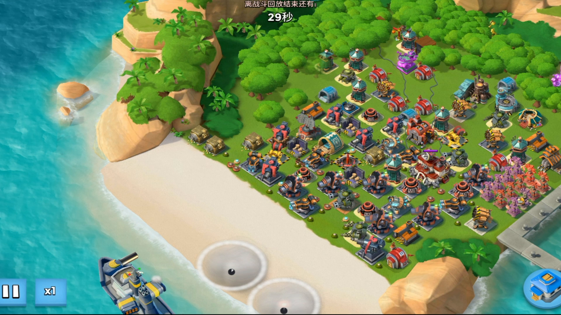 由于插旗点正好喷火和机枪中间,所以第一引导聚集后分叉了,如果是离建筑远一些,烟雾可以再少半个。此图只是模拟登陆,要实际操作的资源岛大本和登录点可以保持一条直线,引导点丢在本左上角(为了大本队聚成一条线),剩下就是坐得爆本。。。。。上次这么无语还是在上次
