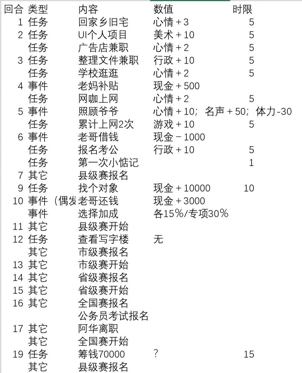 虽然是打出设计大v为结局,但其实三个职业(种地 gwy 工作室)都体验了,个人顺序如下: 开局先猛猛刷题,期间靠去政务大楼兼职赚钱,属性越高赚得越多 一次30体力 最后考上之前去兼职我大概400元一次(看属性定 考上后每回合只需去一次政务中心打卡,10体力 一个月工资差不多6w 简直不要太划算 剩下时间可以干副业 工作室跟种田两手抓 攒到一万就可以去租办公楼 招人开始接单赚钱,攒到四五万的时候去