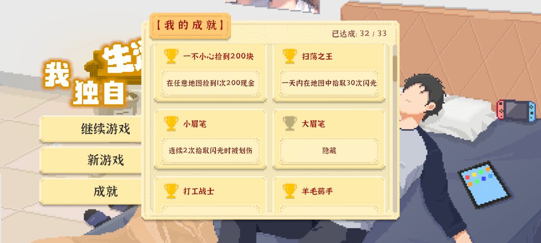 不是单纯的为了刷成就,种地、考公、设计这三样事最快通关就是聚焦一件事做,其他事不要管。 进入游戏锅简单剧情, 点击手机-网购-小型冰箱, 出门-网咖上网刷体力,体育场撸猫-跑步3000米1次,便利店买零食,广告店泡小艾,家乡泡小花,手机点外卖,回家看设计书,晚点再睡全部看ui设计。 第二回合 便利店买零食,体育场撸猫跑步,网咖上网,乡村开垦荒地完成任务面板,回家睡觉UI设计。 第三回合