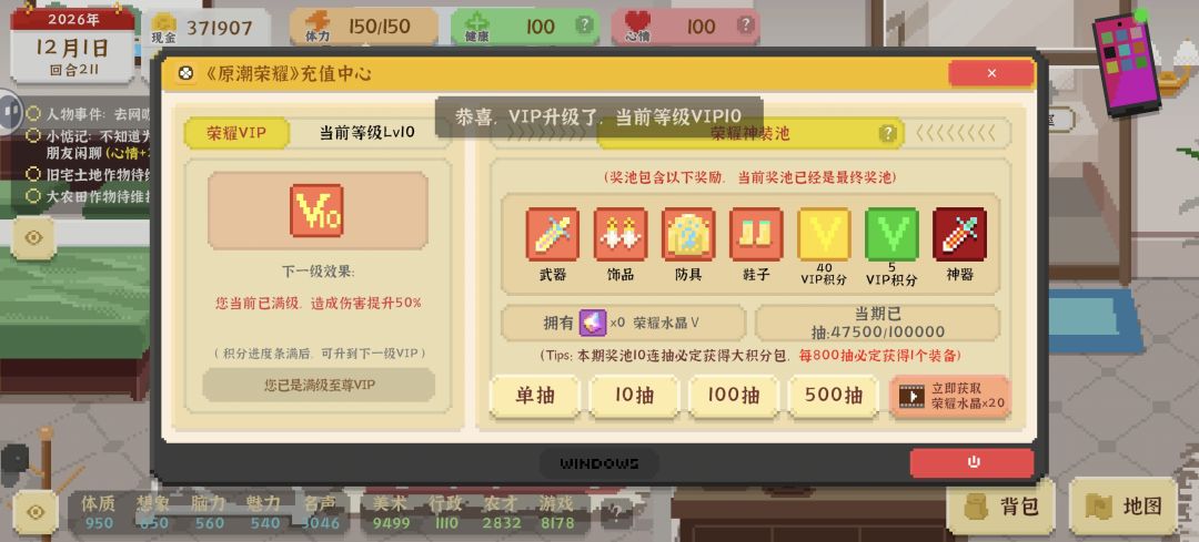 第一个月美术,第二个月种田,第三个月考公上岸,不买彩票不看广告,30回合即可搞定80万房车。 本攻略表白艾薇,也可以分配资源在同一时间拉小花好感到70 首先,每回合都要获取完大地图上所有的额外体力:外卖奶茶+撸猫+零食+双杠+椅子+可乐+公司茶水+上网共计73–103点体力,吃饭可以有36-55点体力。 一天极限可以拿到150+103+55=308点,完全够刨四块地+指点八个员工+聊三个人+全图救