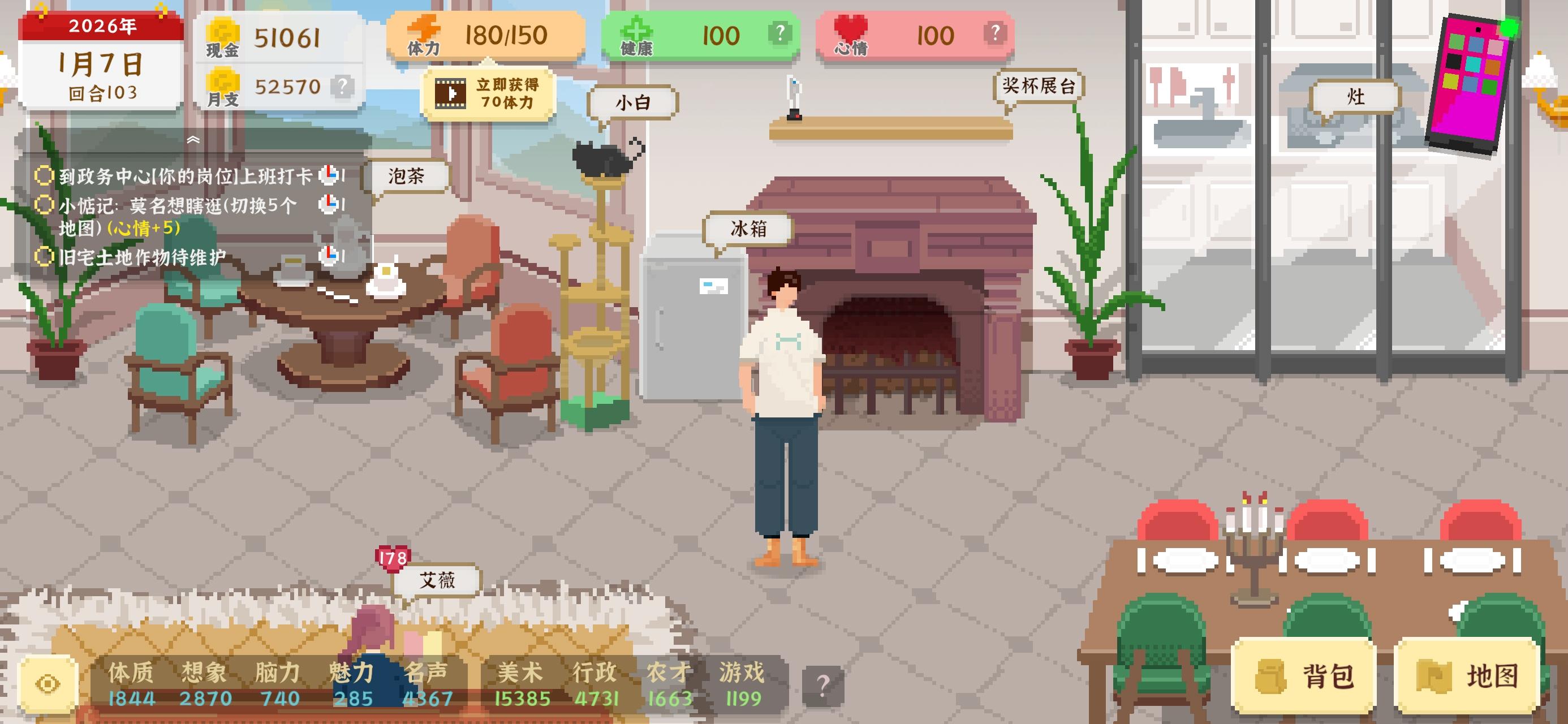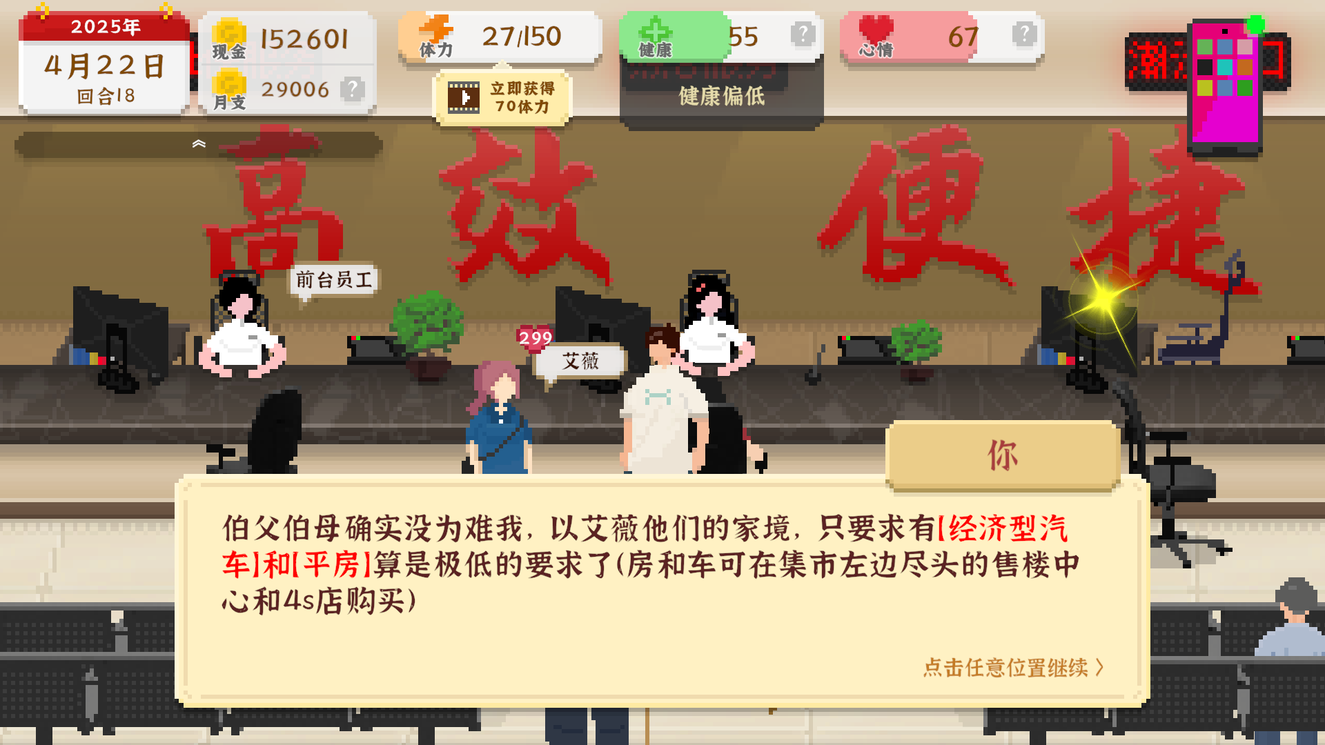 不买彩票,不看任何广告.开局走设计,这是前期(1-12回合)最赚钱的方式!没有之一!.第1回合:完成500分个人作品,之后的双回合接单,先完成一半,后一回合做完全部.第3回合:获得第一次酬劳的钱,买手表和冰箱.第5回合:获得第二次酬劳的钱,买动感单车、(自行车/猫脚架).第7回合:买设计插件、(自行车/猫脚架).第9回合:跟艾薇表白(最快第8回合可表白,但第8回合表白拿不到