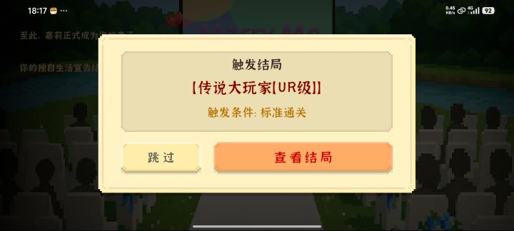 耗时三天,三十多小时,四局游戏,全人物结局,全成就达成,最后这一局也终于结束,虽然还没有全部登上顶峰,却也已经是个人自认的最完美结局啦~游戏很好玩,希望还可以玩到更多这样的游戏。新人玩家有不懂得可以评论询问,只要看到楼主会为大伙解答的