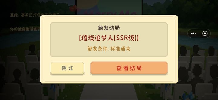 完结,有点小泪目感觉这个生活是很多人羡慕的,也真实反应出了当下社会年轻毕业学子的困扰,虽然游戏和现实生活中的差别很大但也是可以感受出来的,完结撒花,一切又重头开始