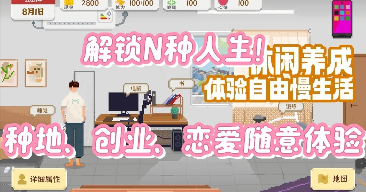 #游戏冒险家大集结 复古像素风手游,自由体验考公务员、结婚买房等现实人生路线,无氪金,轻广告,值得一玩。