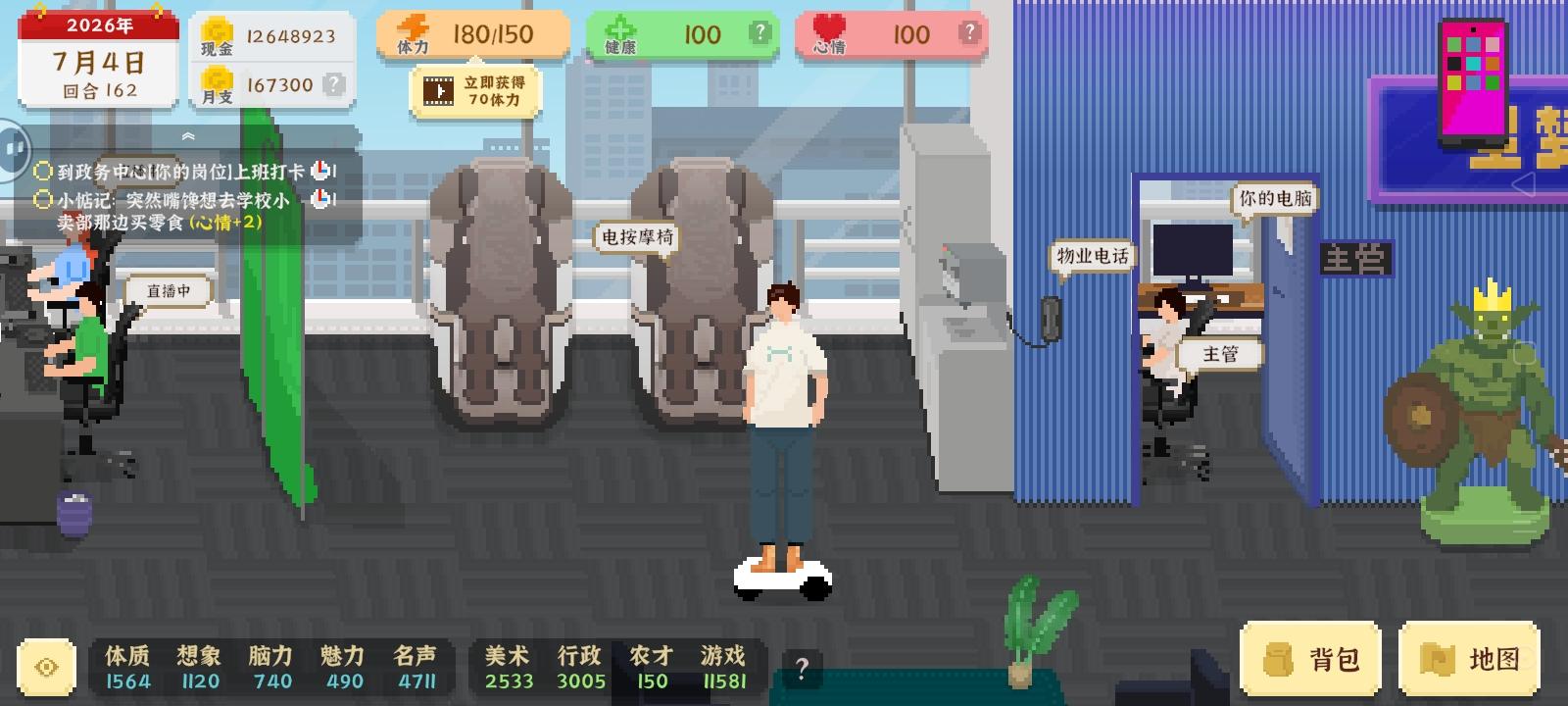 开局先买锅灶套装,优先创作,解锁设计角,然后去家乡找到小花(凑资金),设计角设计,每天把兴趣探讨跟闲聊点满就行,有钱了再送礼物,然后如果开局有闲钱,解锁单车,等解锁学校的时候去找何同学,只用每天闲聊,收获心情,然后每天设计,通过小花给的心情回复,不够就去冲澡,健康不够就跑,等到有闲钱的时候花1100买动力单车,把体力拉满还能搞健康,攒到9000就写字楼18层,先招低级员工,但是基础属性一定要大于9