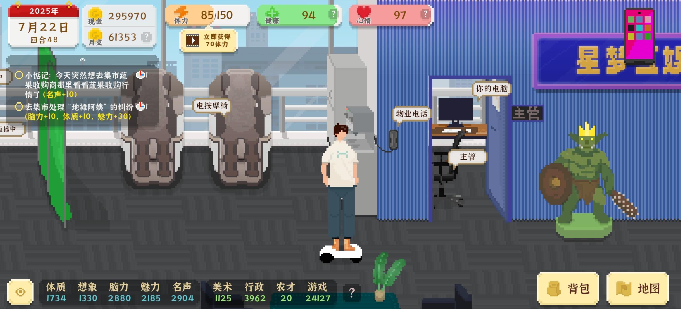 第一次玩这个游戏嘿嘿,我这第一个档70回合就有车有房有老婆还上岸了算不算快的了嘻嘻。虽然说错过了老爸送的神秘大奖(就是15回合攒够7万块的任务😭俺拼了老命才凑了六万多)后来看攻略才知道奖励是辆车好像。不过玩的还是挺开心的嘿嘿(๑•ω•๑)感觉上手难度不高,像我这种喜欢雨露均沾的全面流也能玩的挺开心~唉要是现实生活也能这么容易赚钱就好了😪