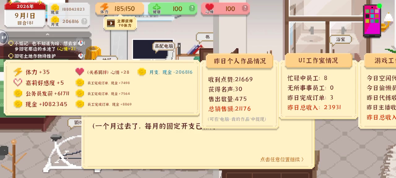 作为失业青年,从大城市回到小县城,开启他的每天生活开始经营人生,跟人交流,外出购物,多条感情线,玩家有自主权可解锁不同结局。#宝藏游戏安利派对#发现好游戏 #发现新游戏 #游戏安利 #我独自生活